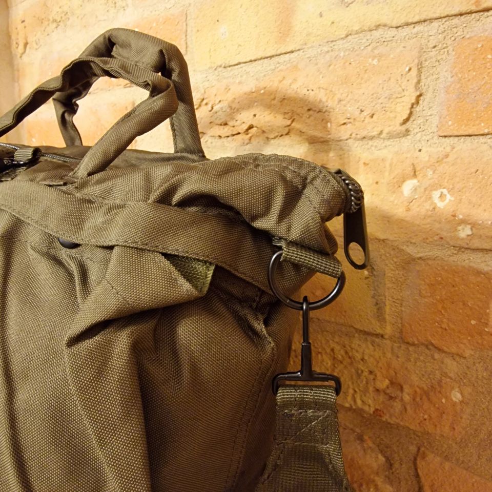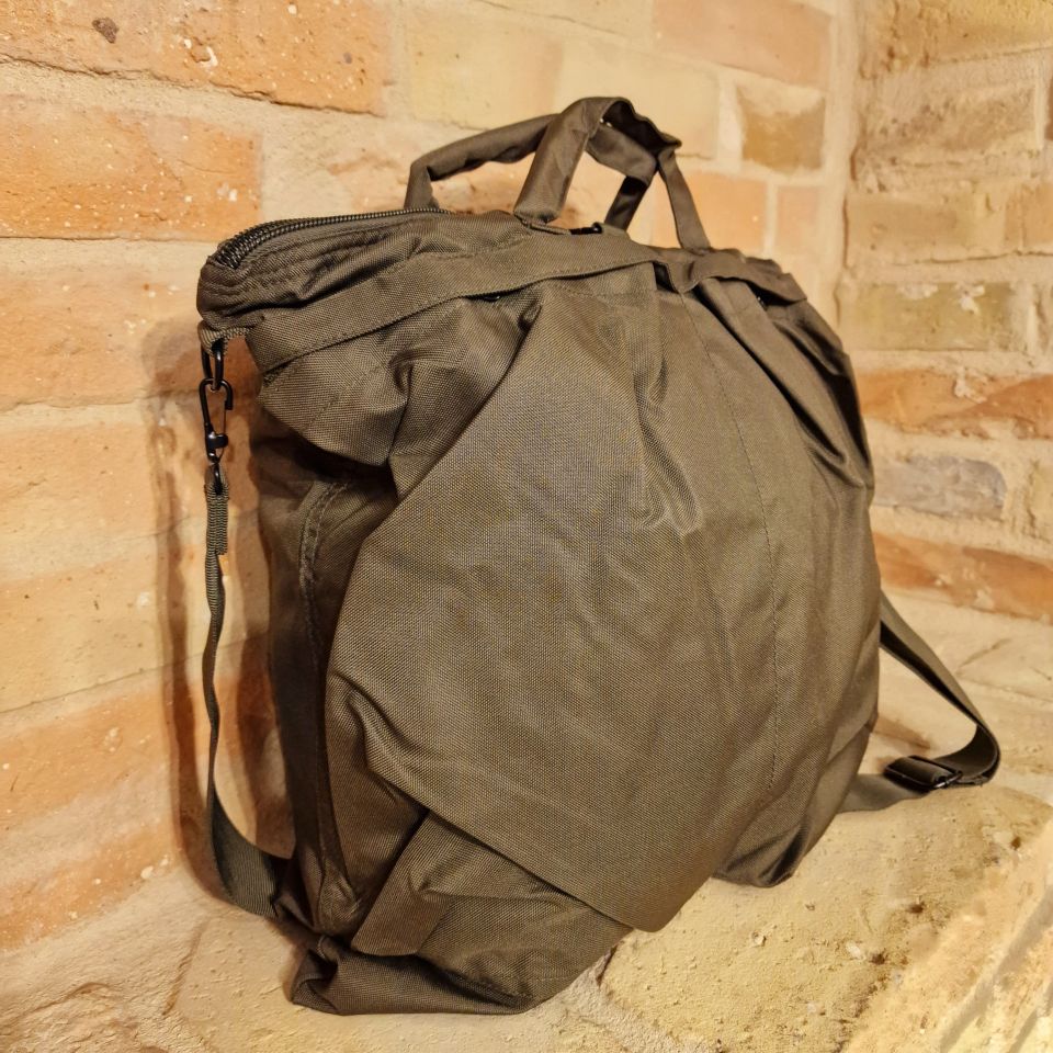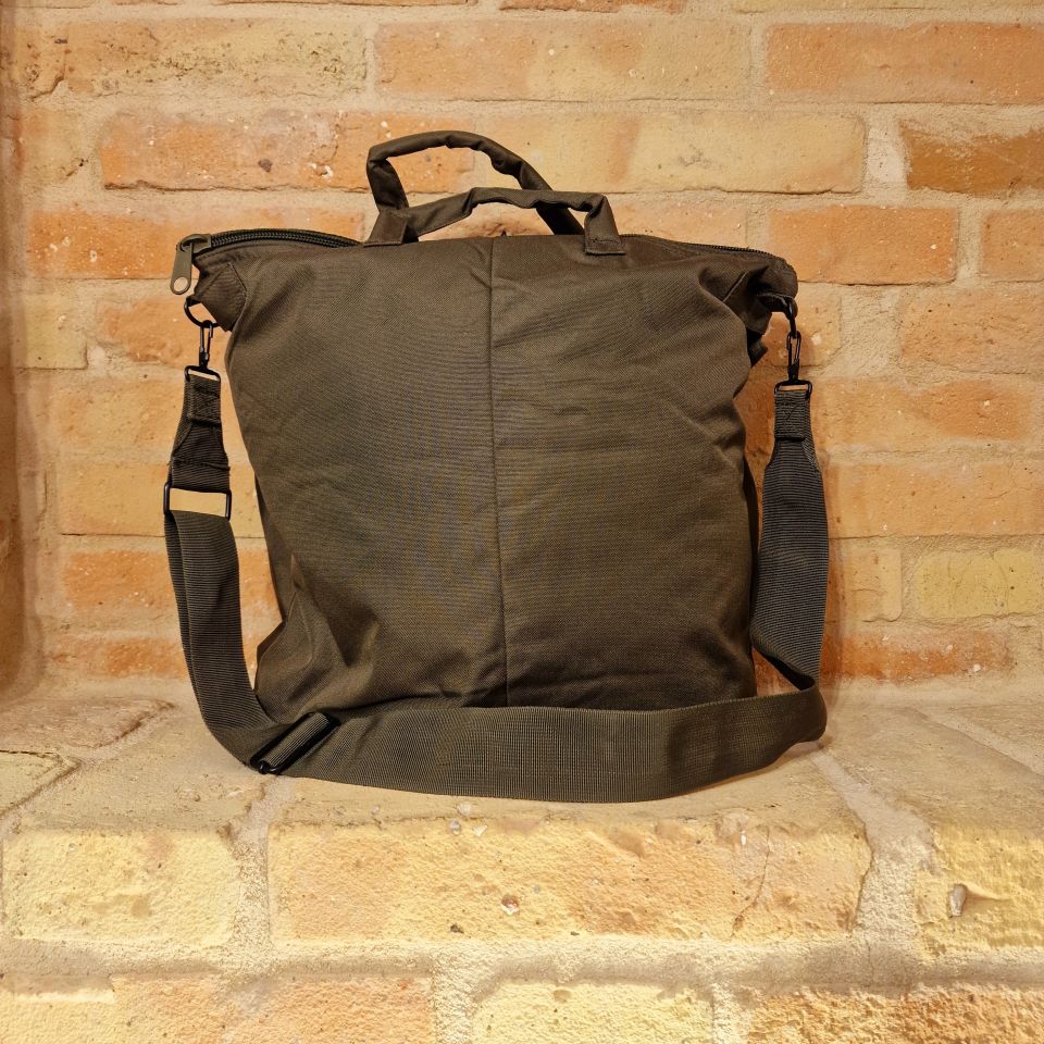Replica della iconica helmet bag militare, in poliestere color verde.