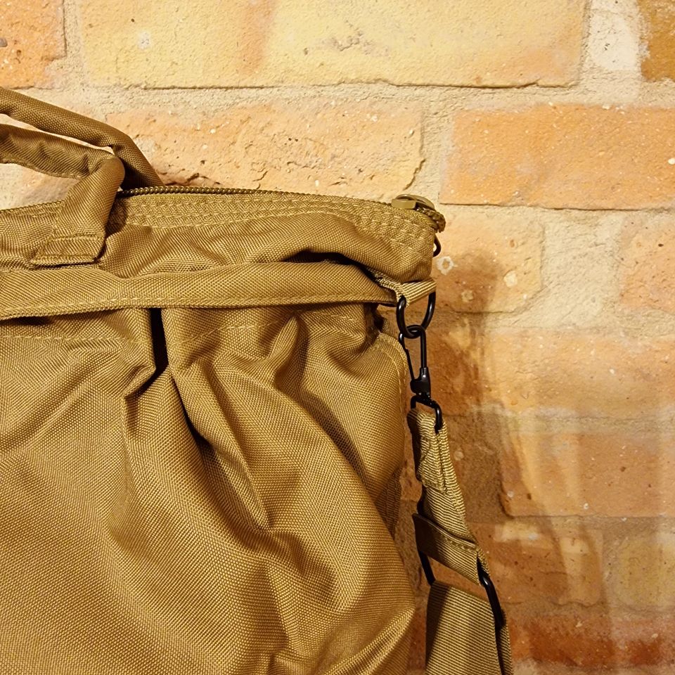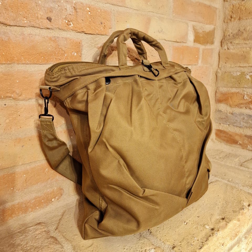 Replica della iconica helmet bag militare, in poliestere color beige.