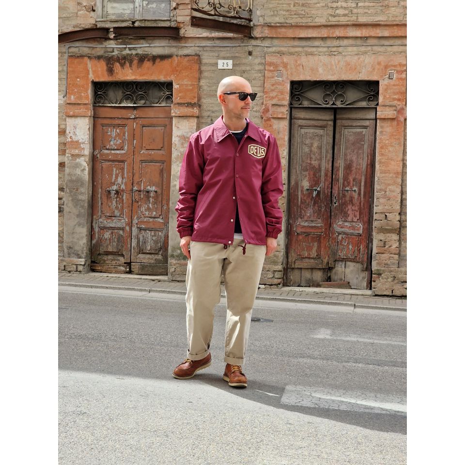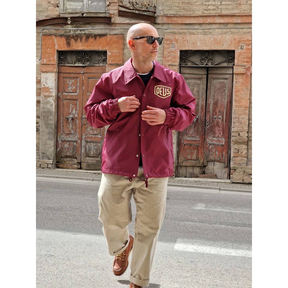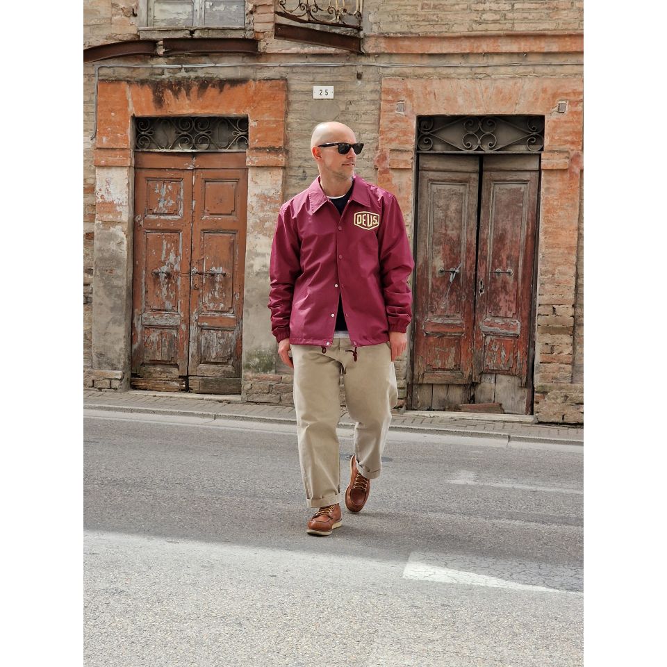 Storica giacca Deus con Logo sul petto e stampa Addres sul retro.