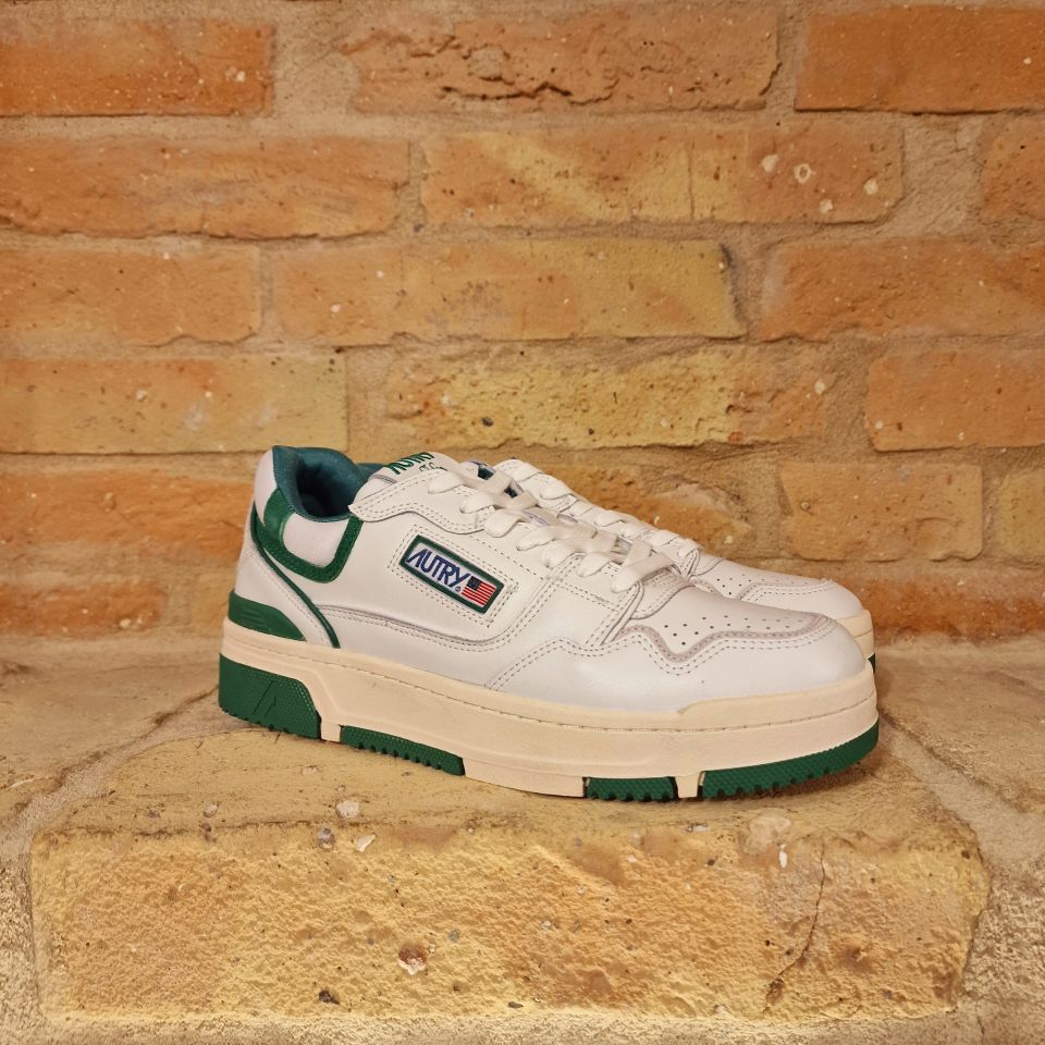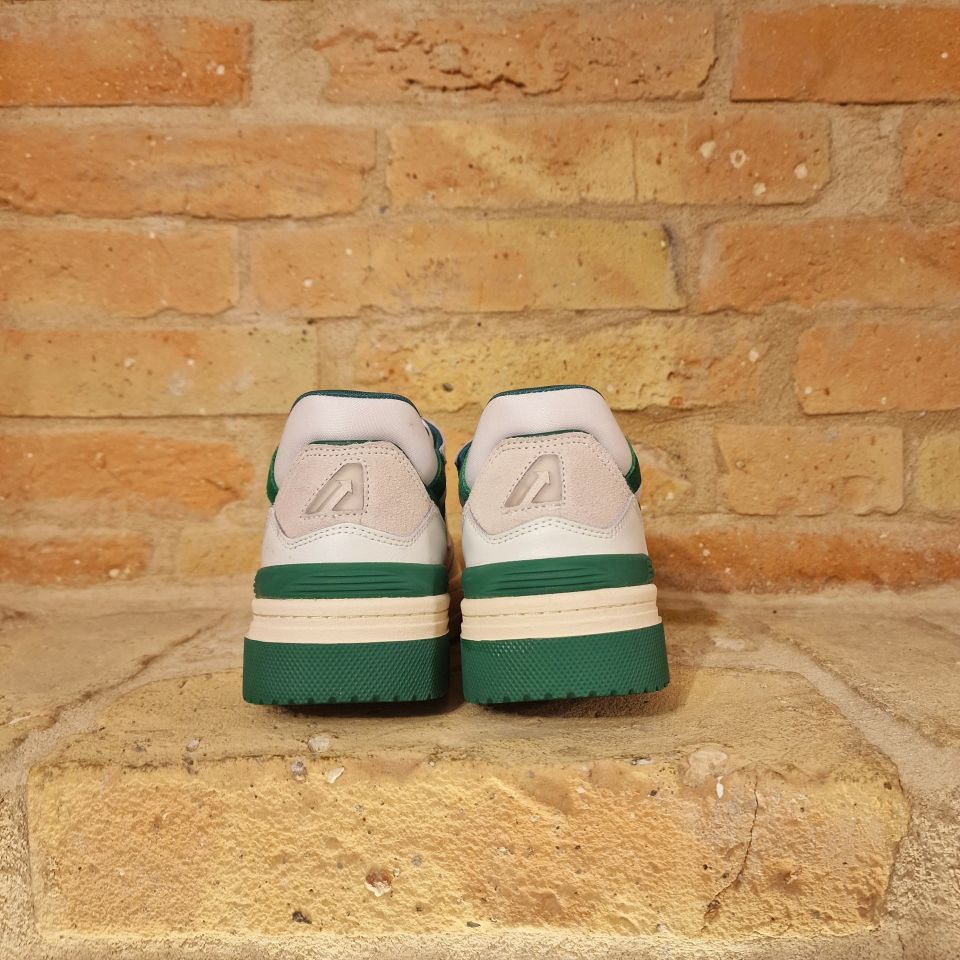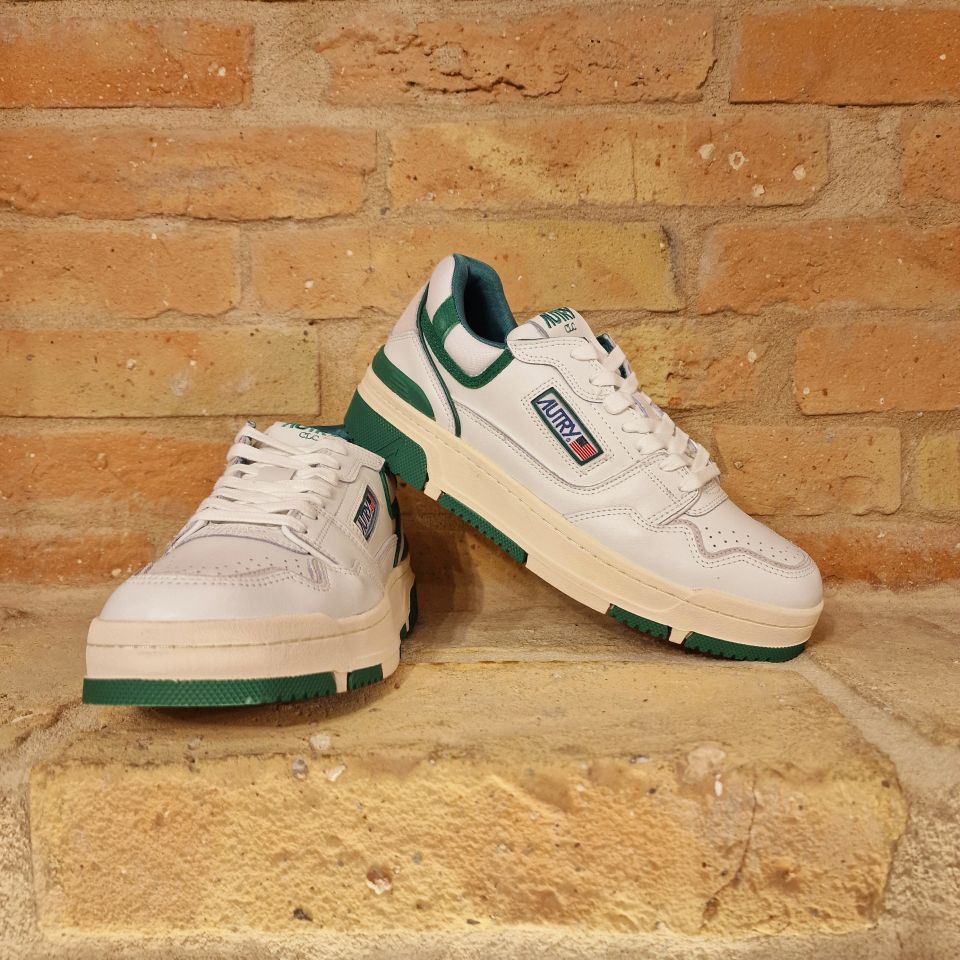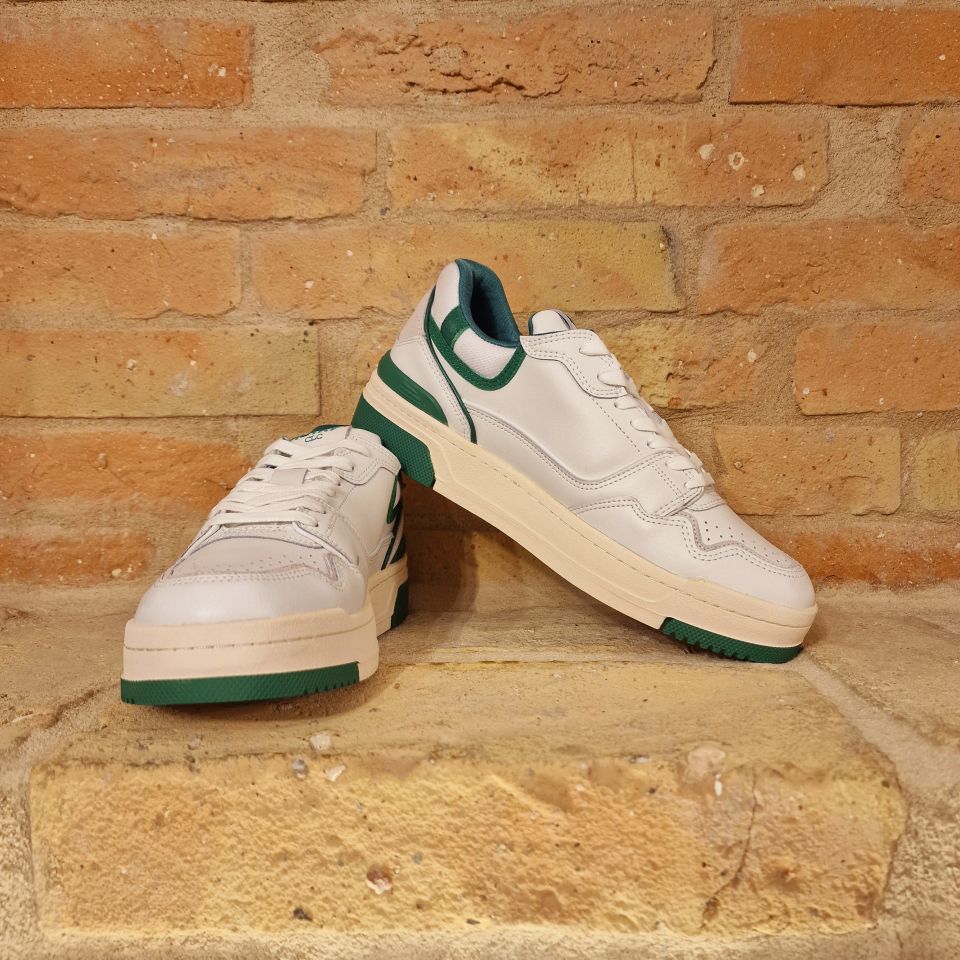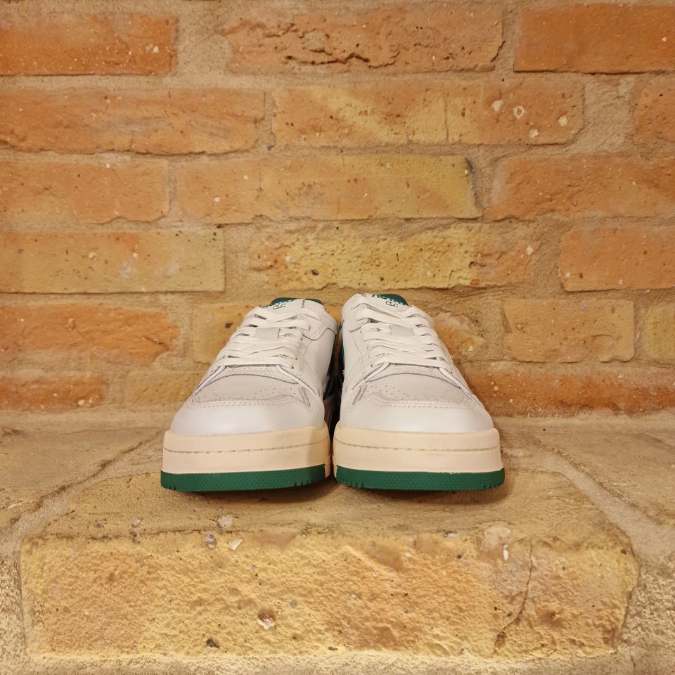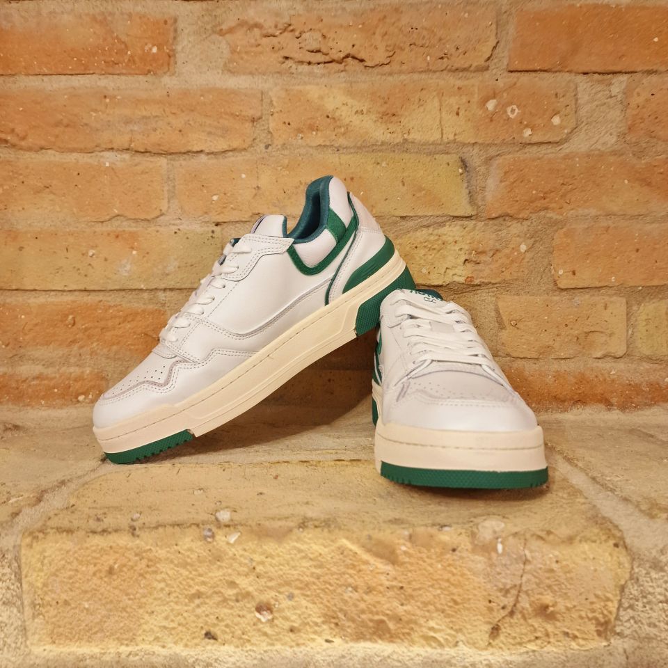 Sneakers in pelle di vitello bianca e con dettagli verdi.