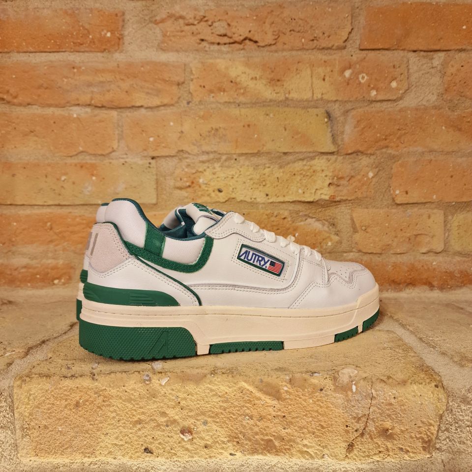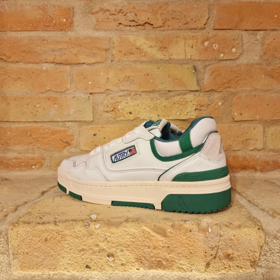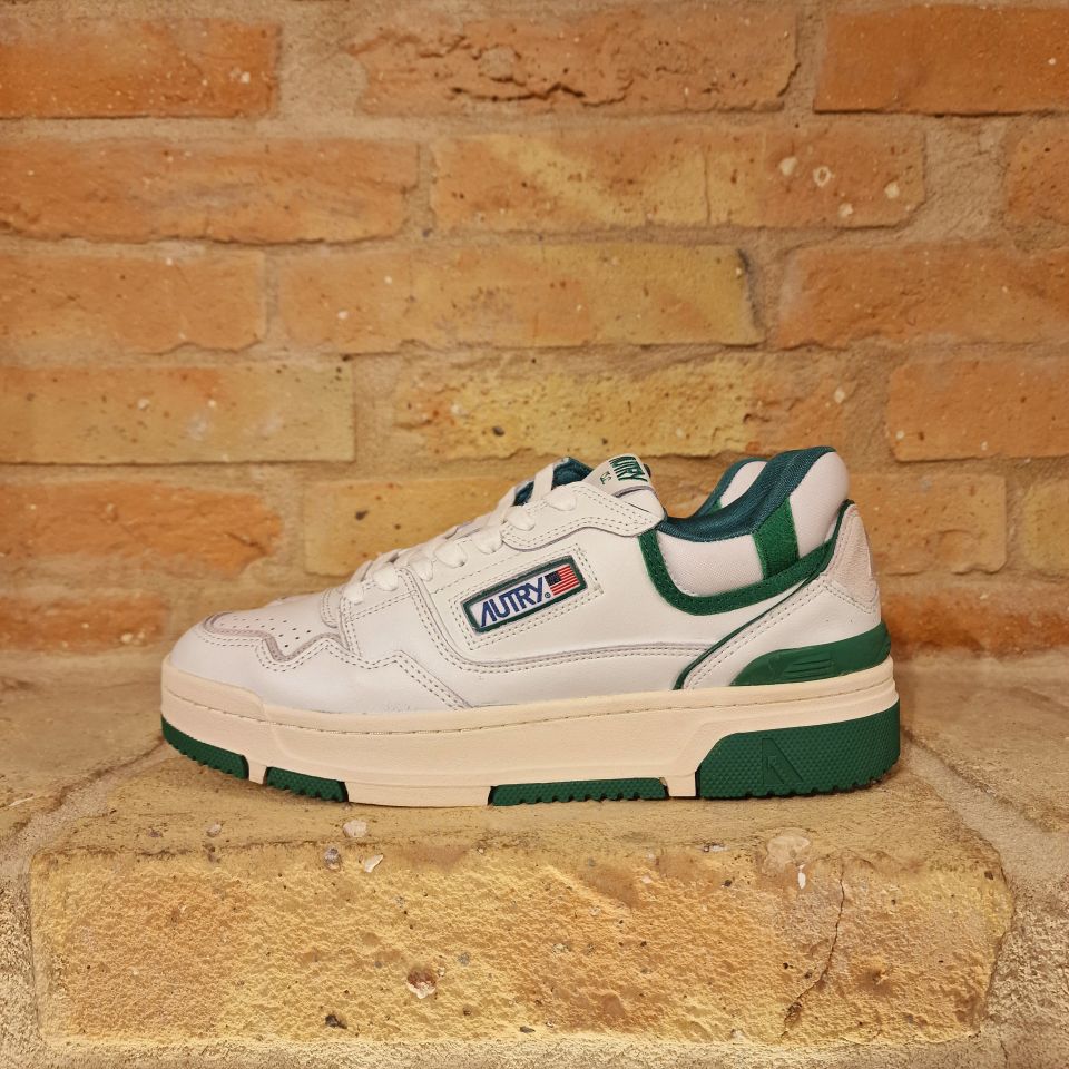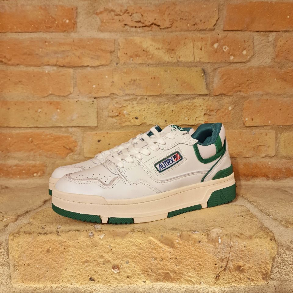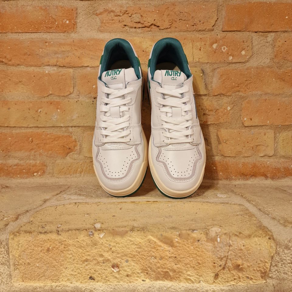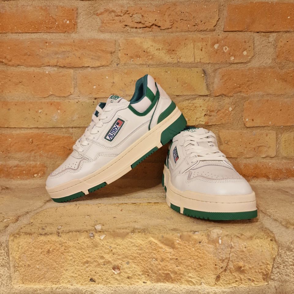 Sneakers in pelle di vitello bianca e con dettagli verdi.