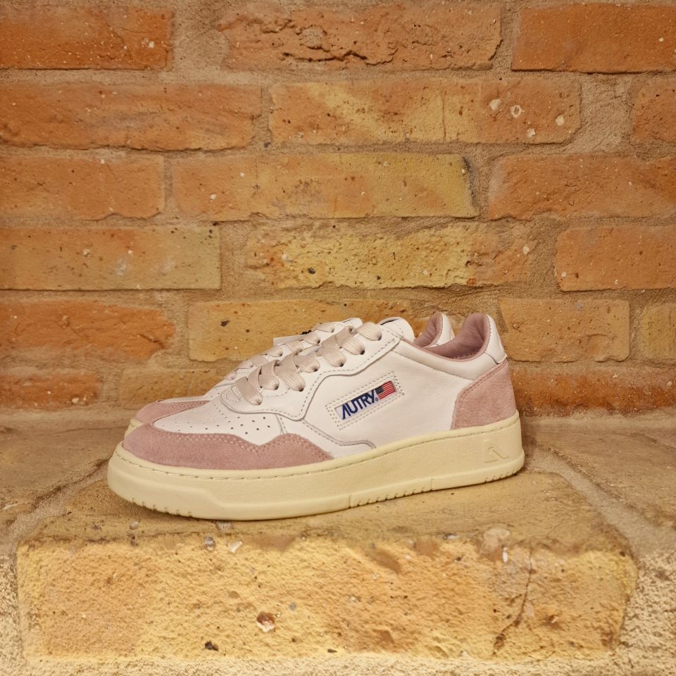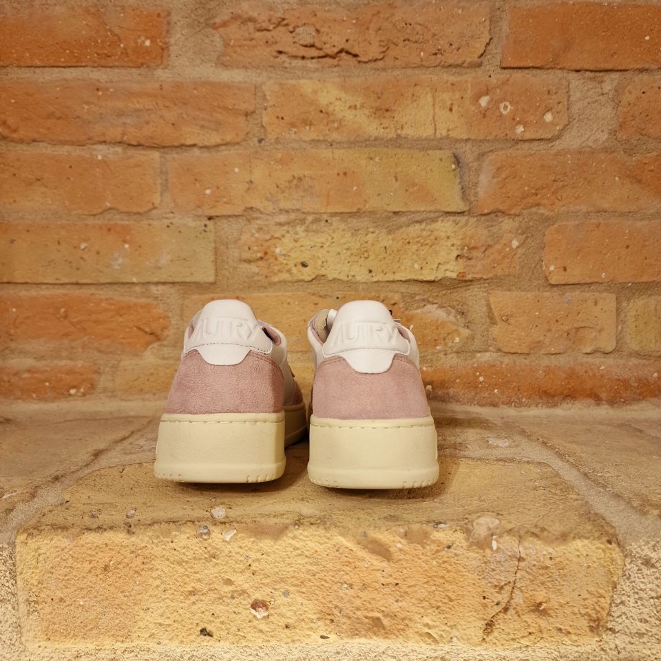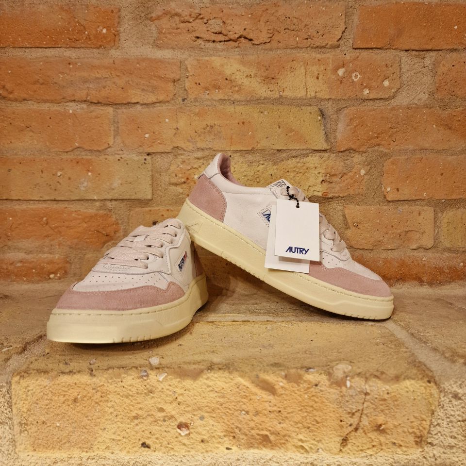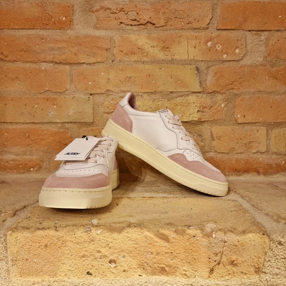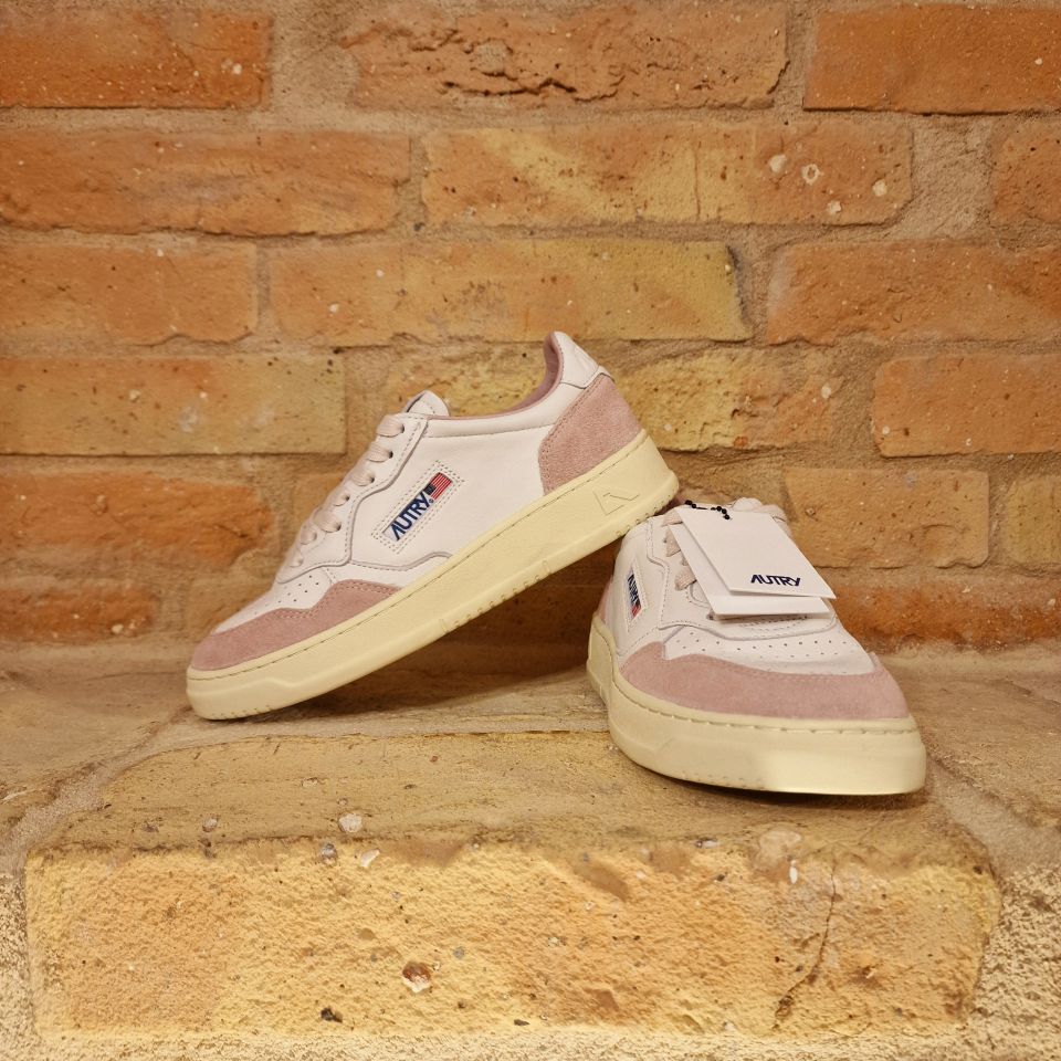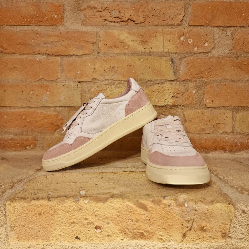 Sneakers in pelle di capra bianca con dettagli in suede rosa.