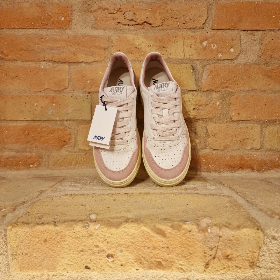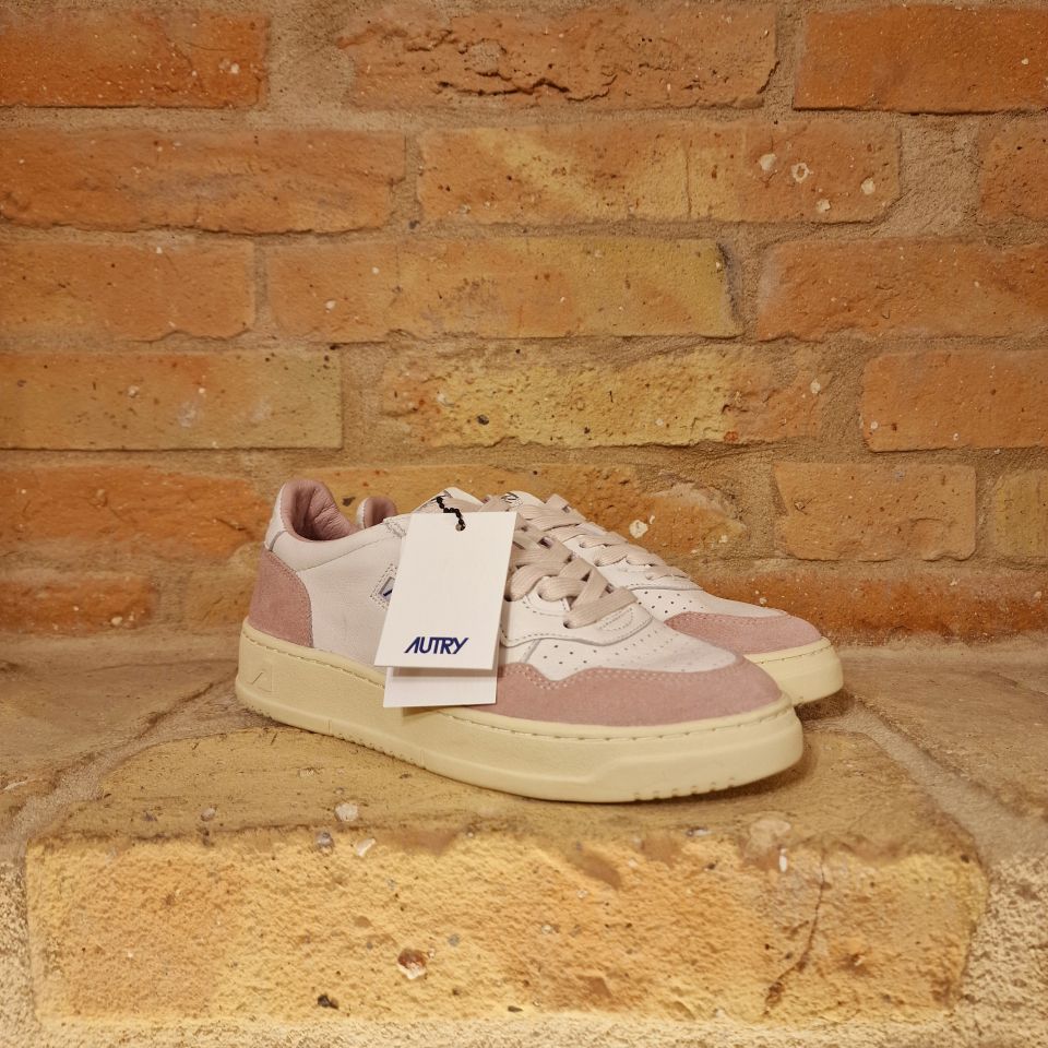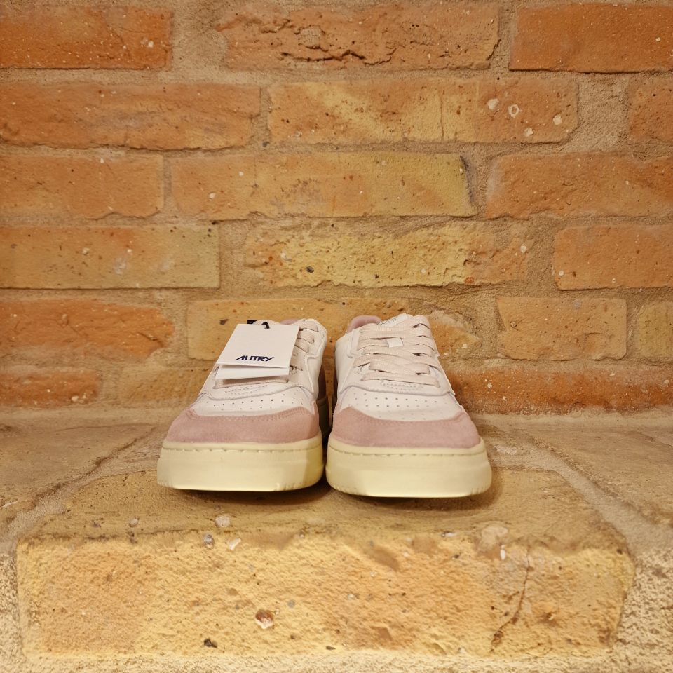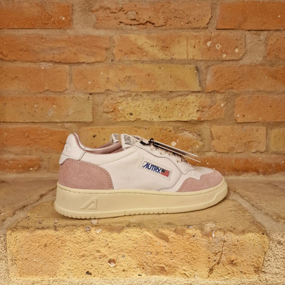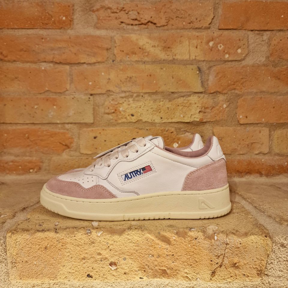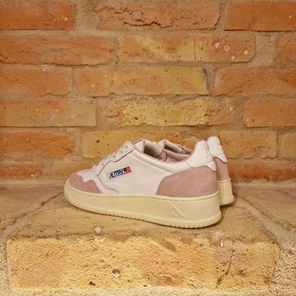 Sneakers in pelle di capra bianca con dettagli in suede rosa.