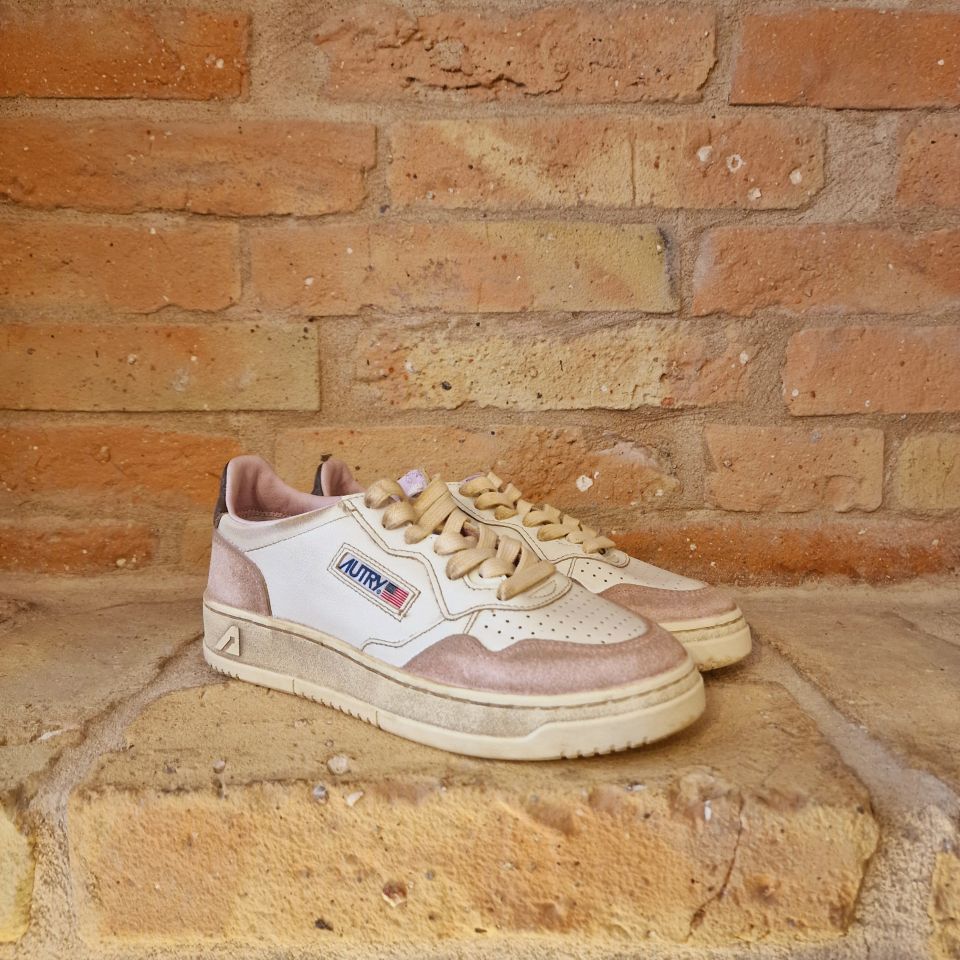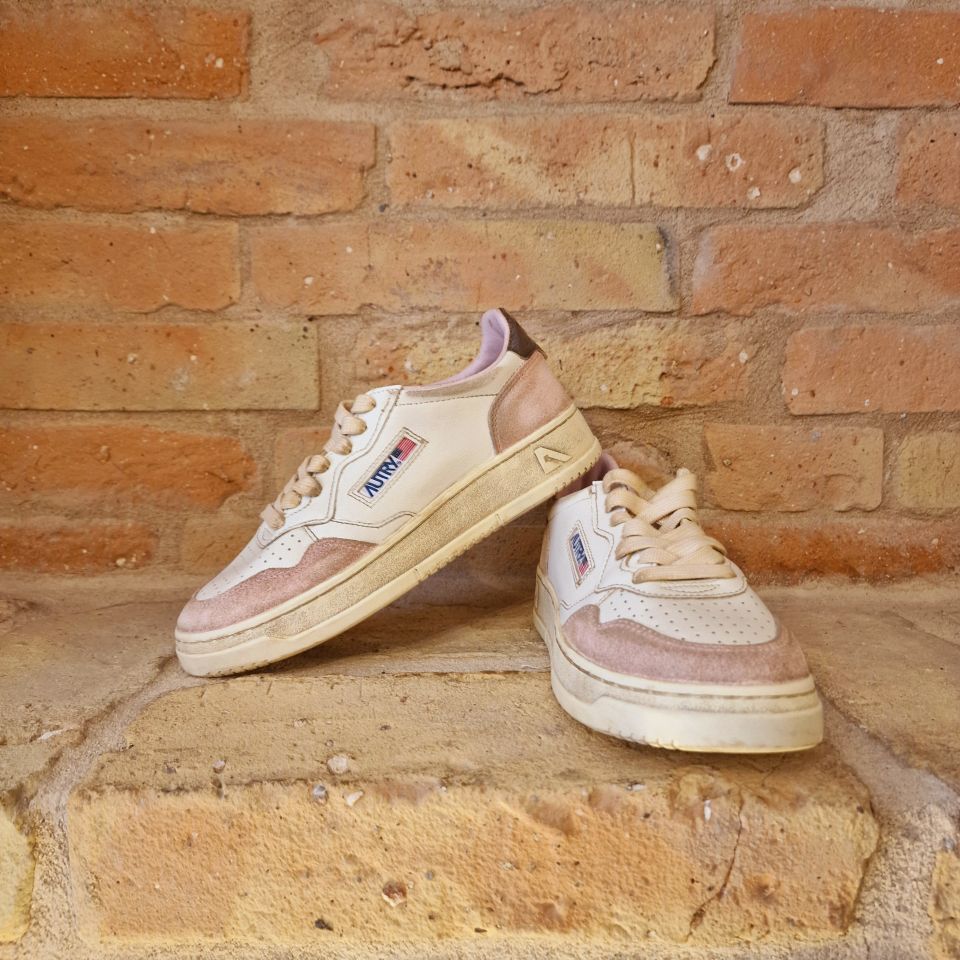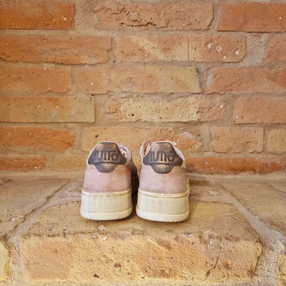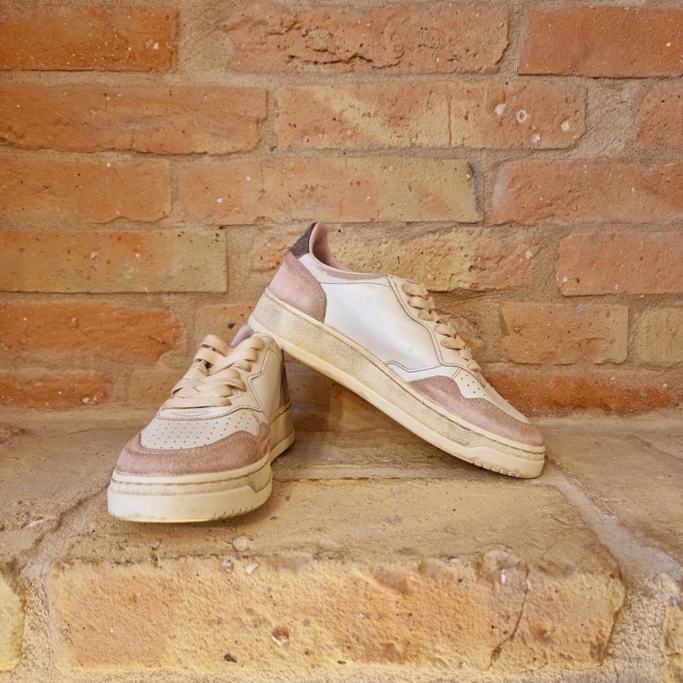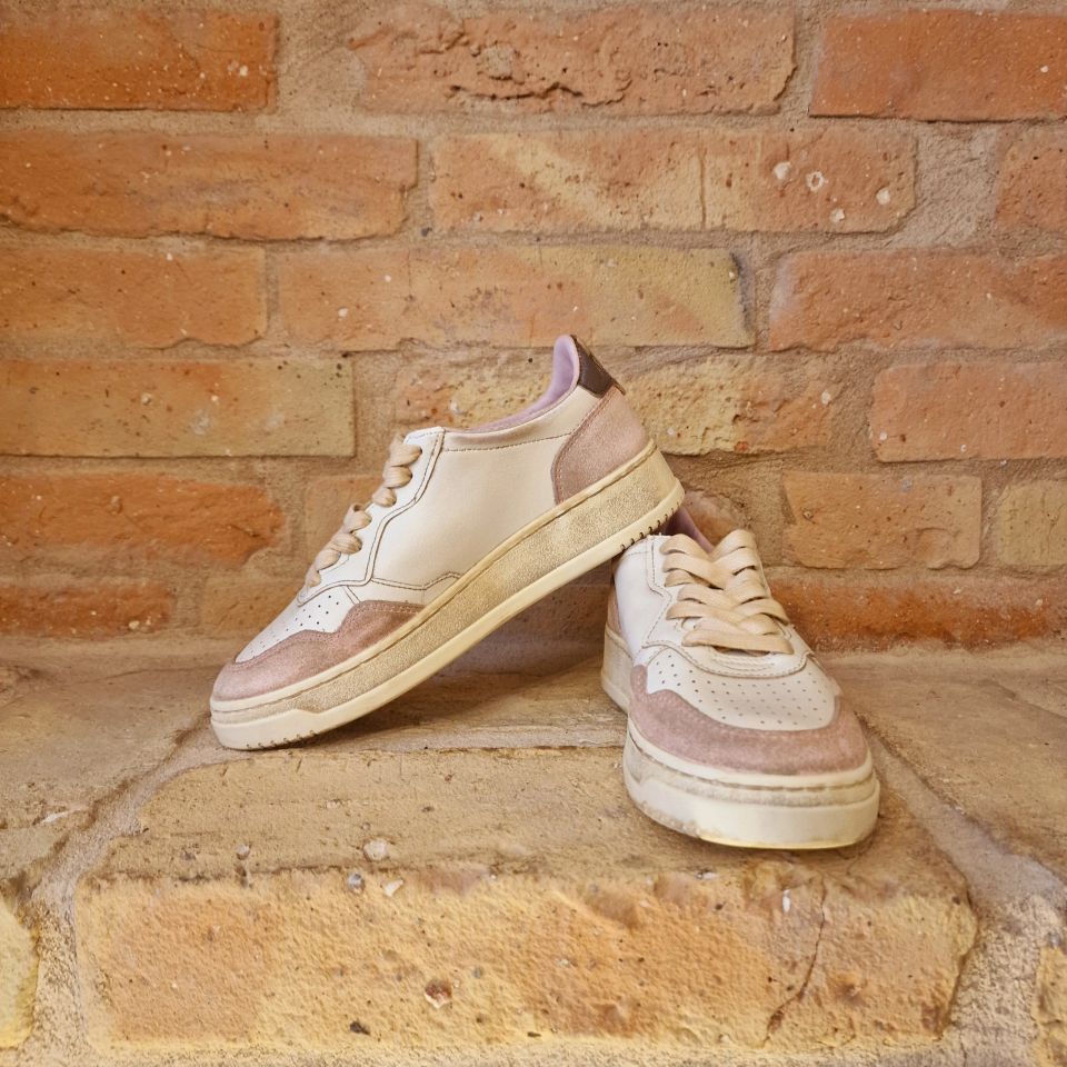 Sneakers in pelle di vitello bianca con inserti in suede in un ricercato mix di tonalità rosa e marrone.