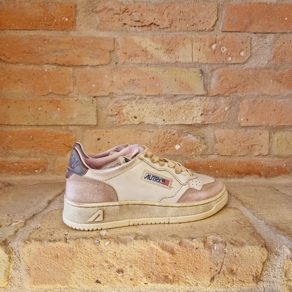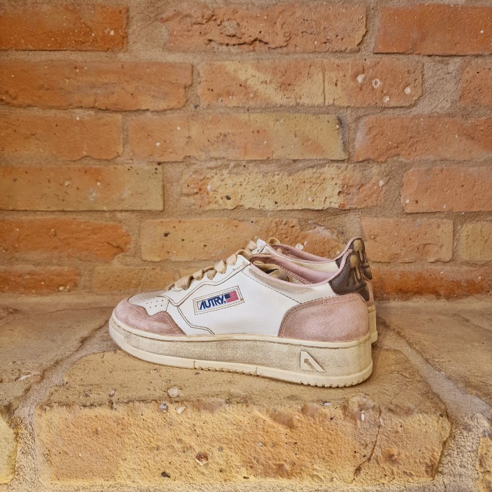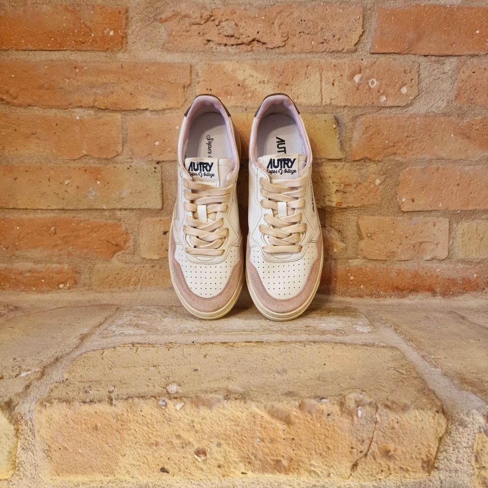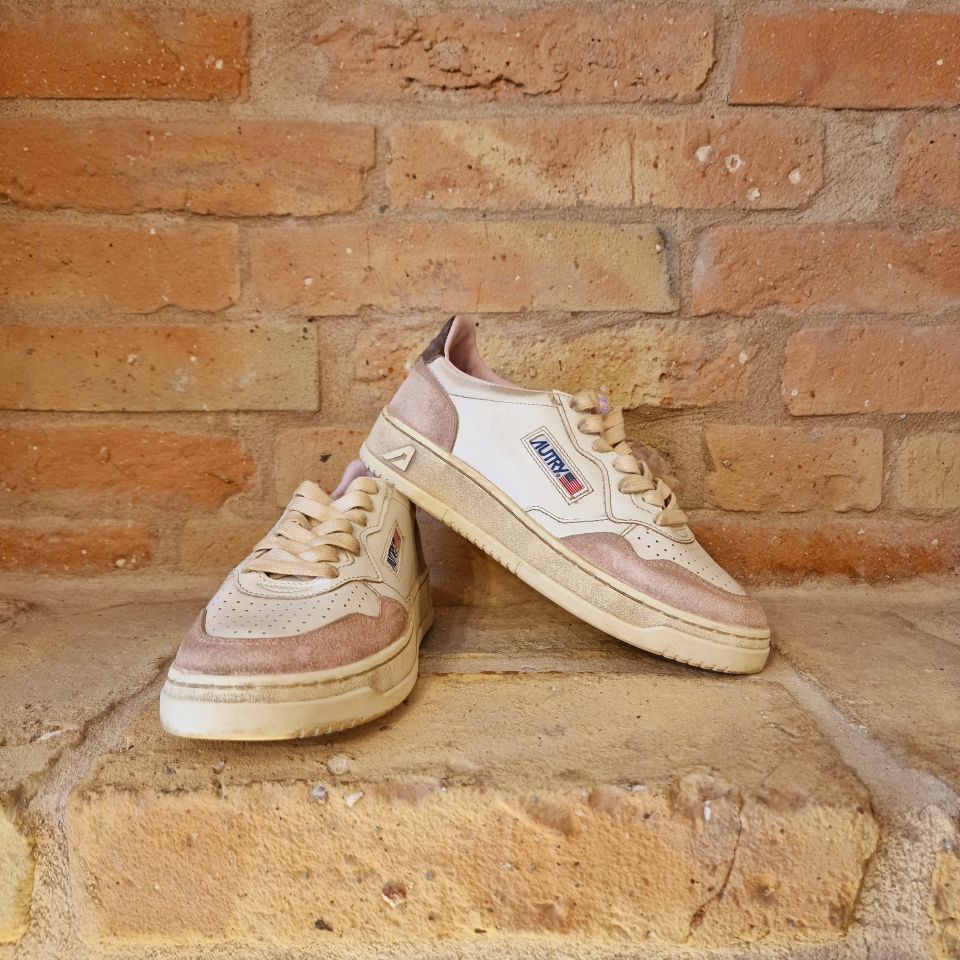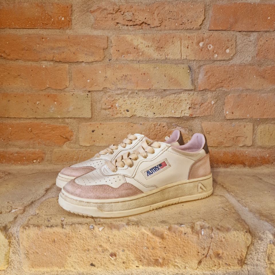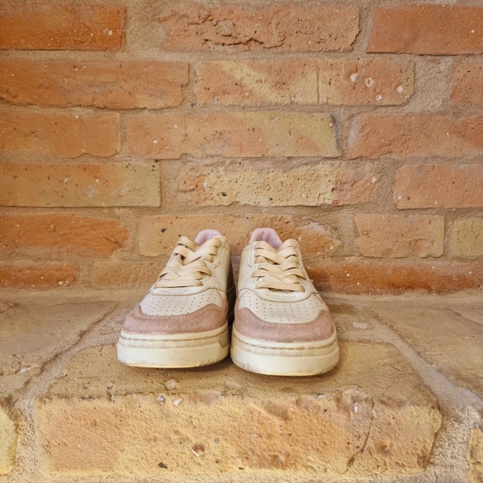 Sneakers in pelle di vitello bianca con inserti in suede in un ricercato mix di tonalità rosa e marrone.