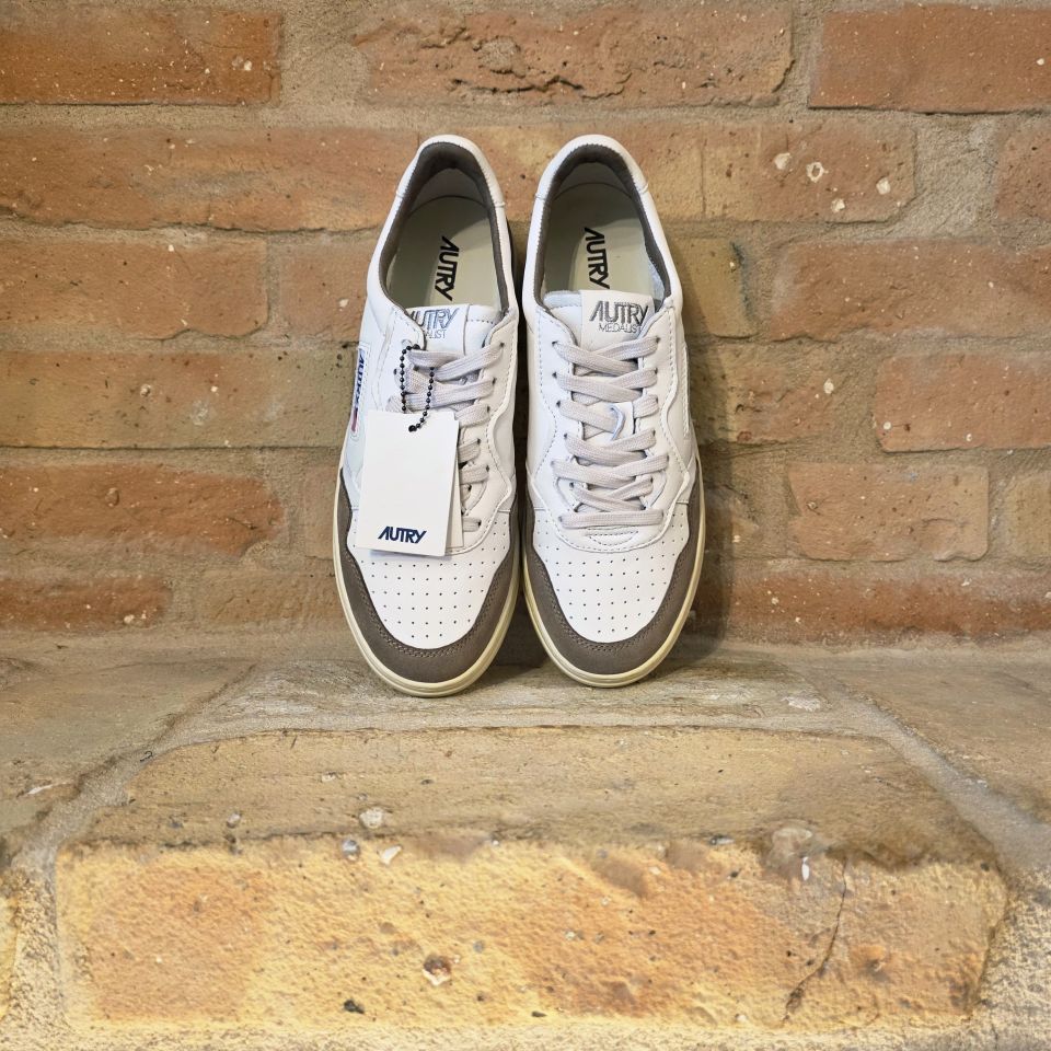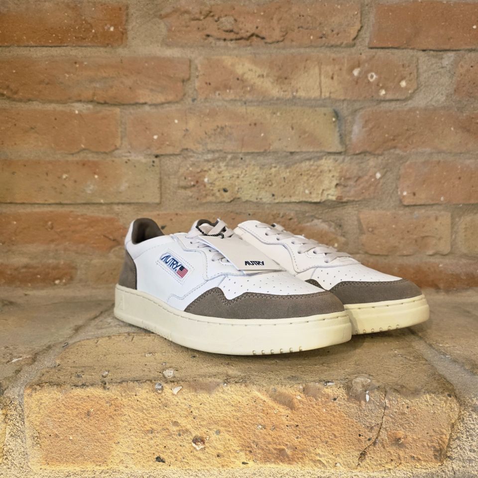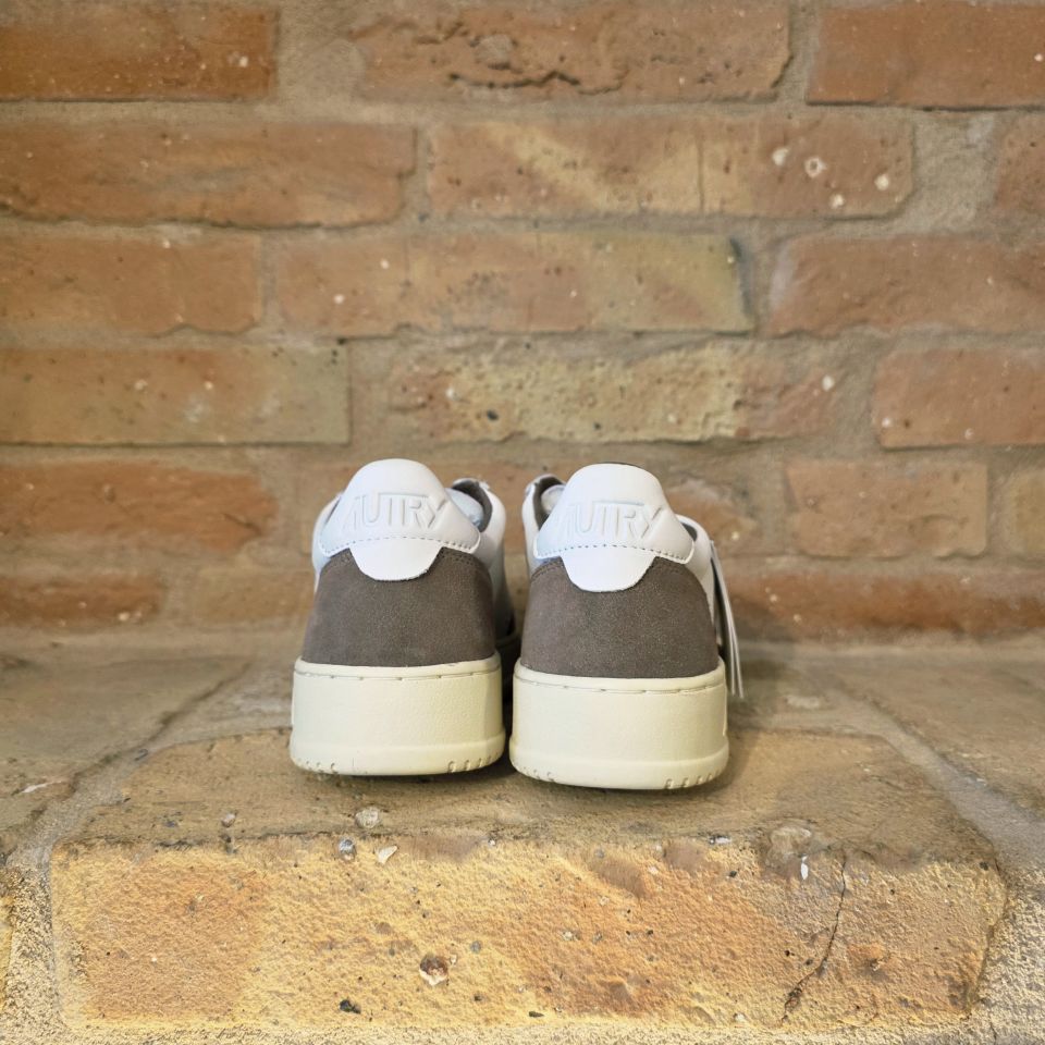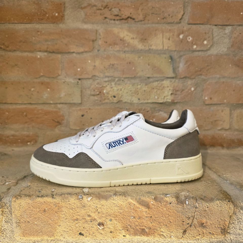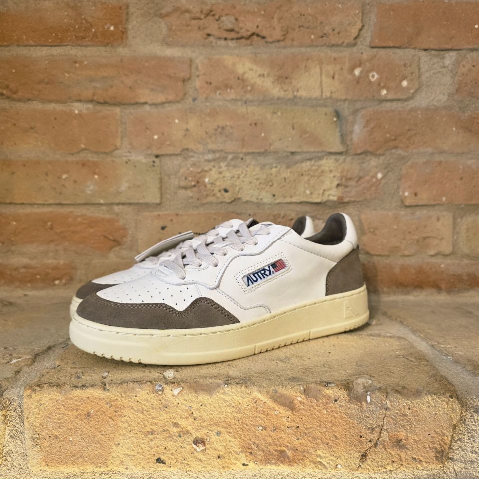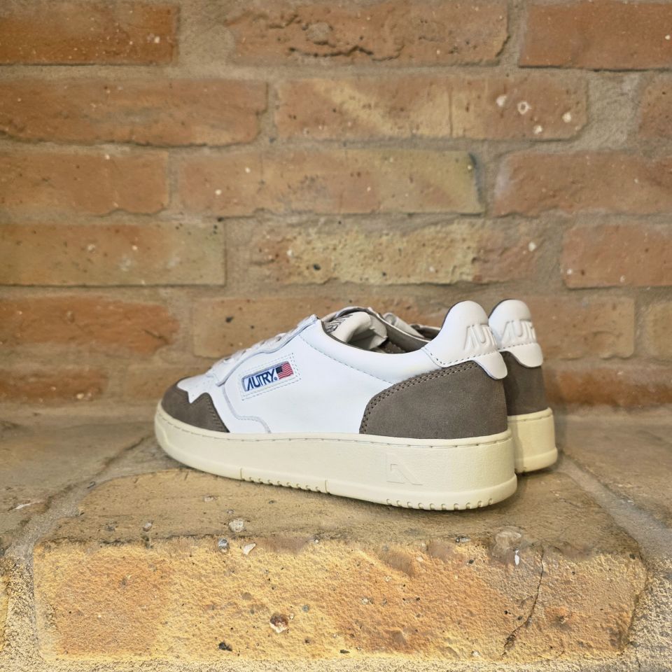 Sneakers in pelle di capra bianca con dettagli in suede tabacco.