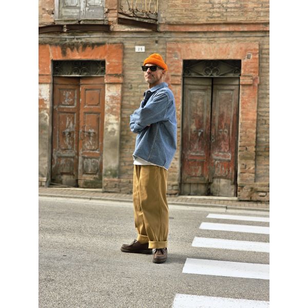 Chino pants in tessuto twill realizzato con telaio dobby.