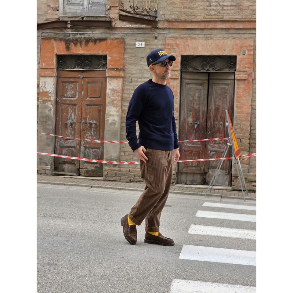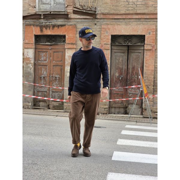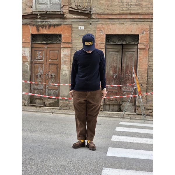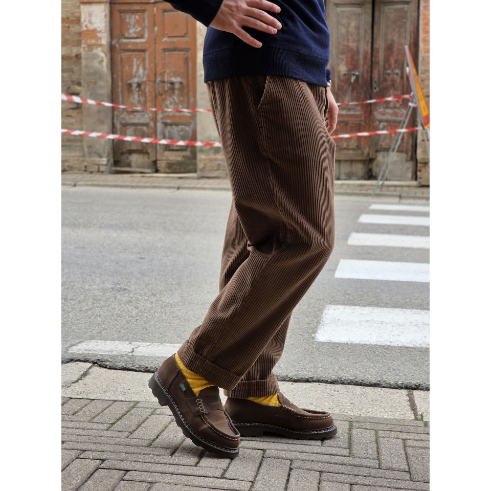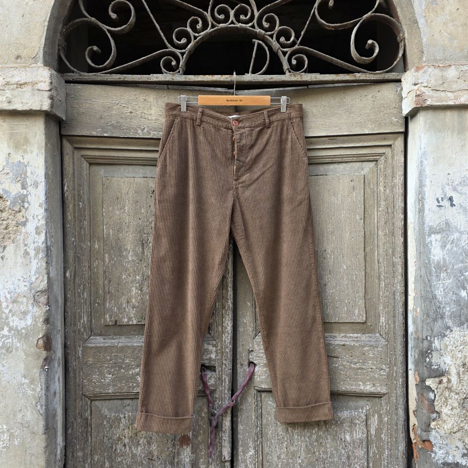 Pantaloni in velluto con chiusura frontale a bottoni.