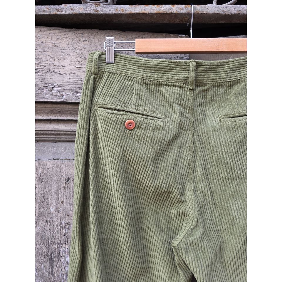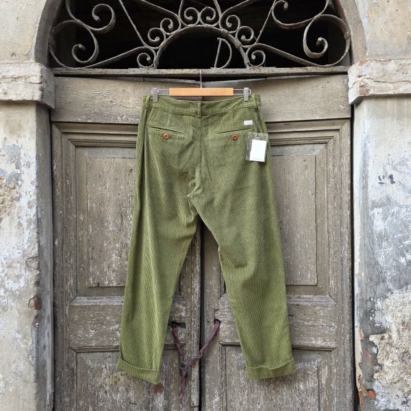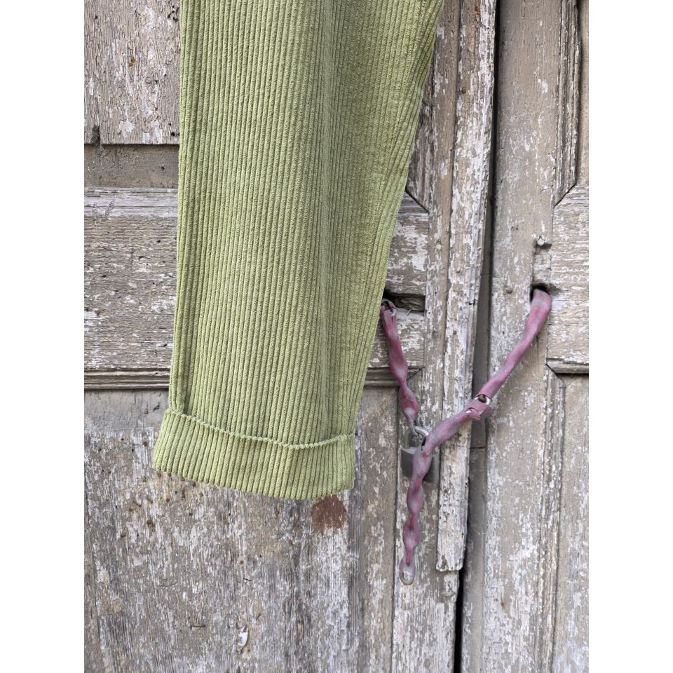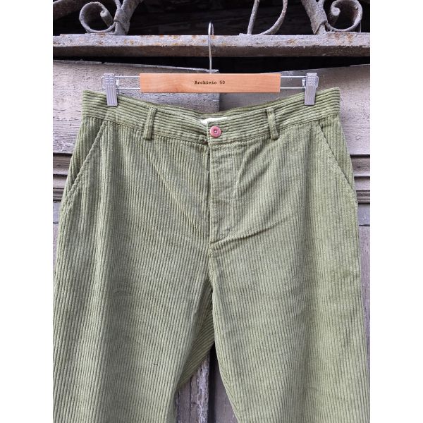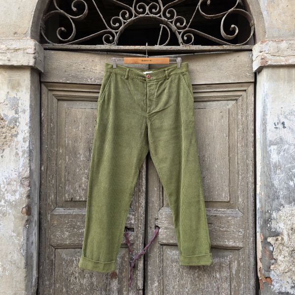 Pantaloni in velluto con chiusura frontale a bottoni.