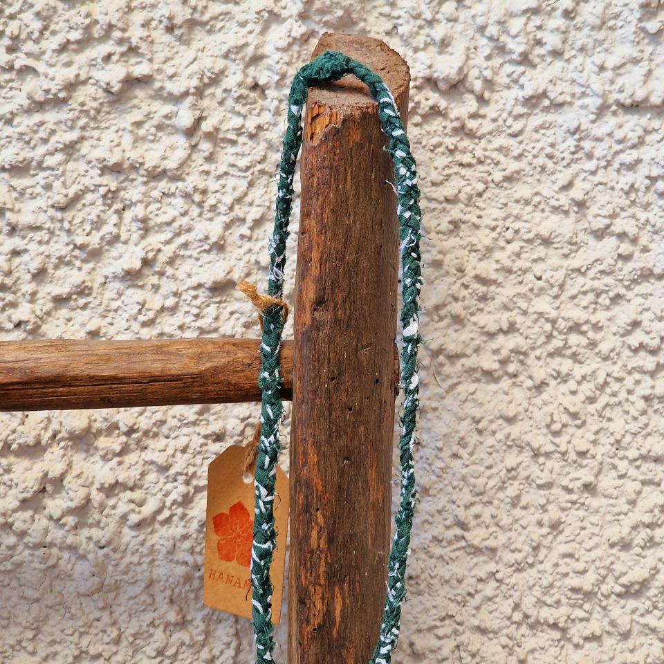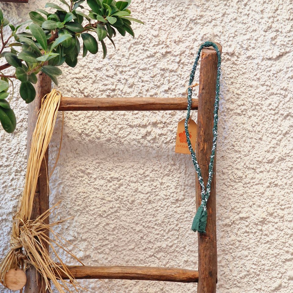 Collana in cotone verdone con stampa bandana intrecciato a mano.