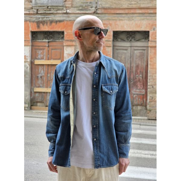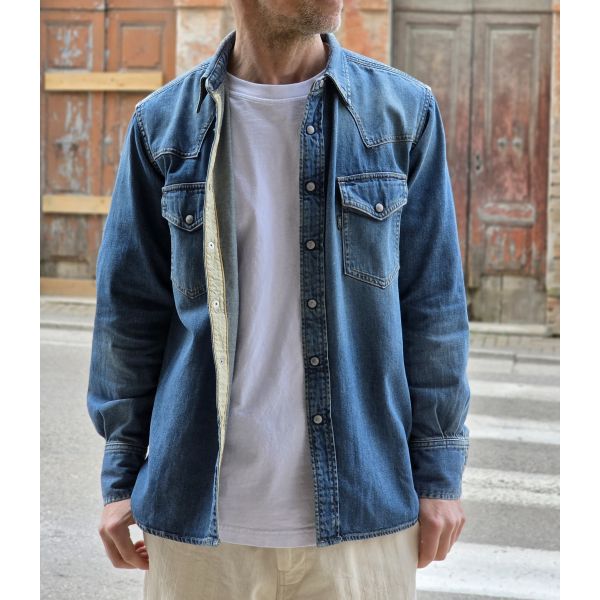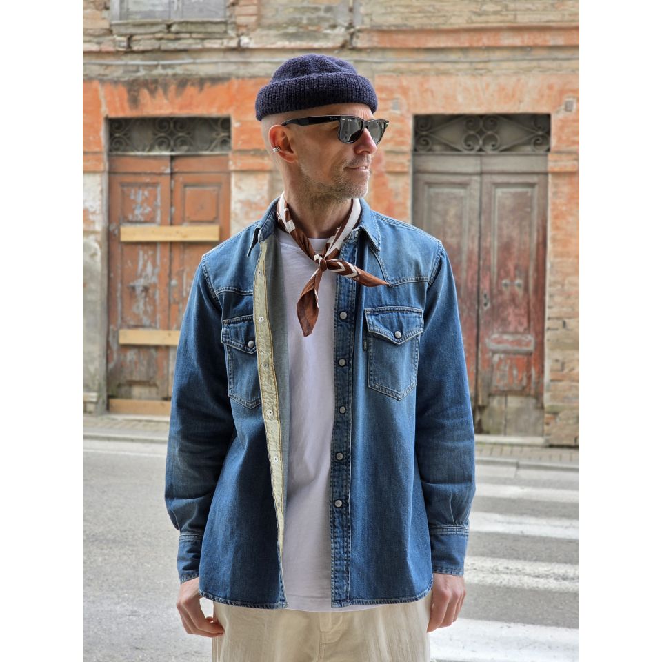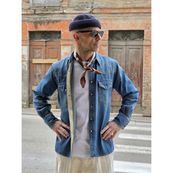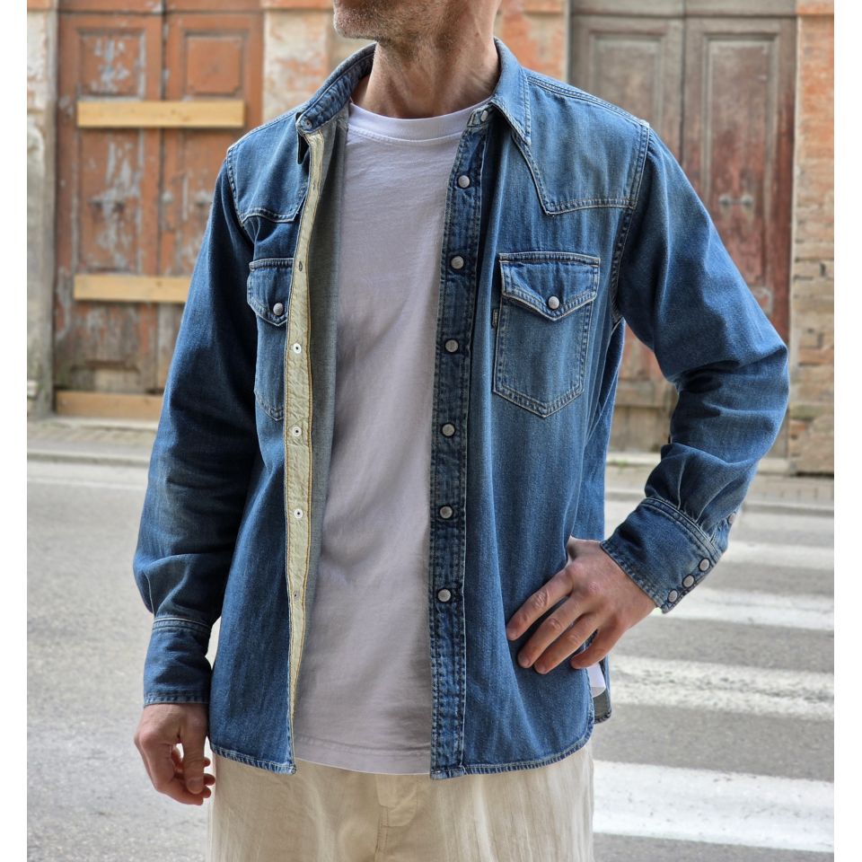 Camicia modello Western con bottoni automatici in madre perla.