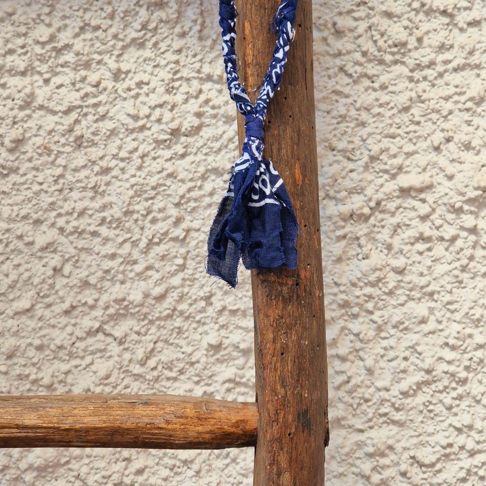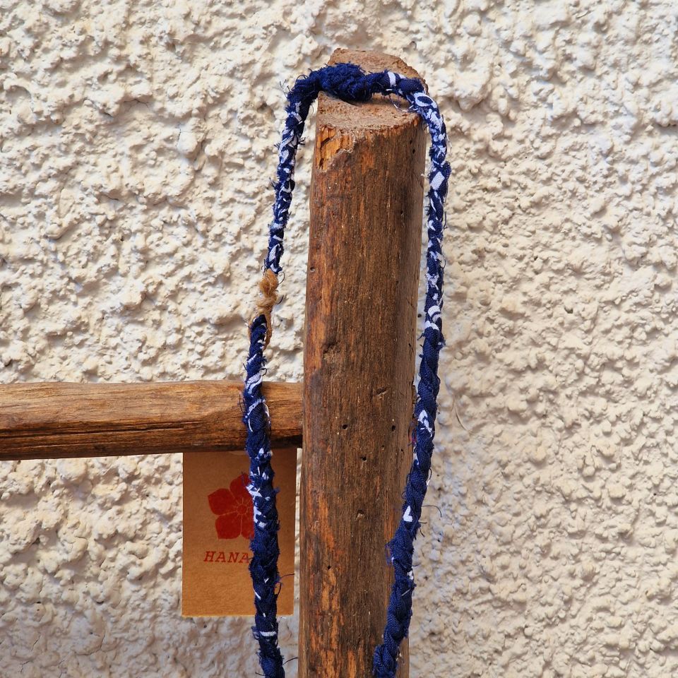 Collana in cotone blu con stampa bandana intrecciato a mano.