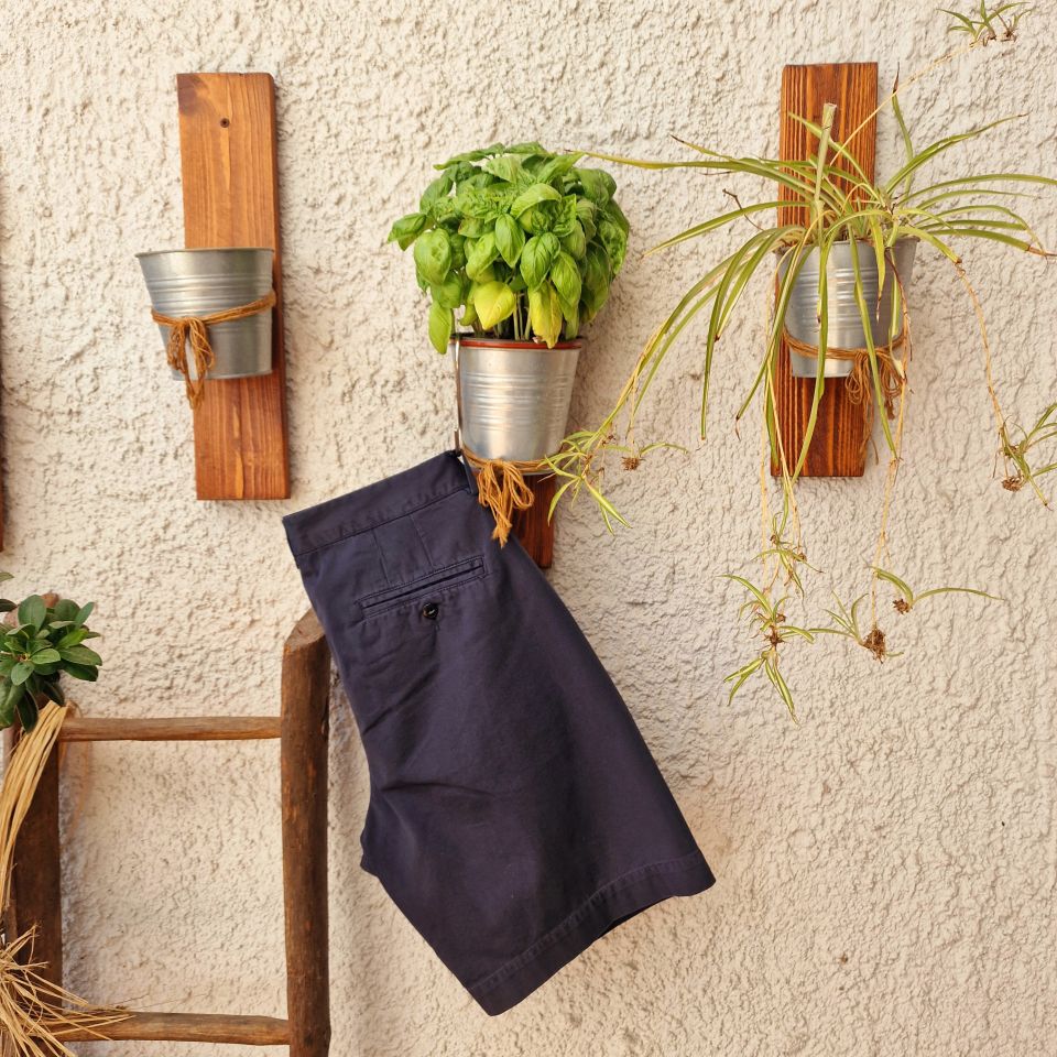 Due tasche laterali taglio pantalone.