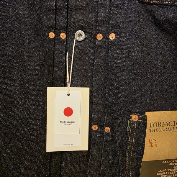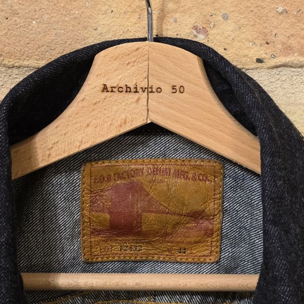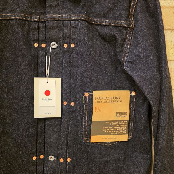 Giacca in Denim cimosato da 14,75 oz robusta e resistente, prodotta da F.O.B. da oltre 30 anni.