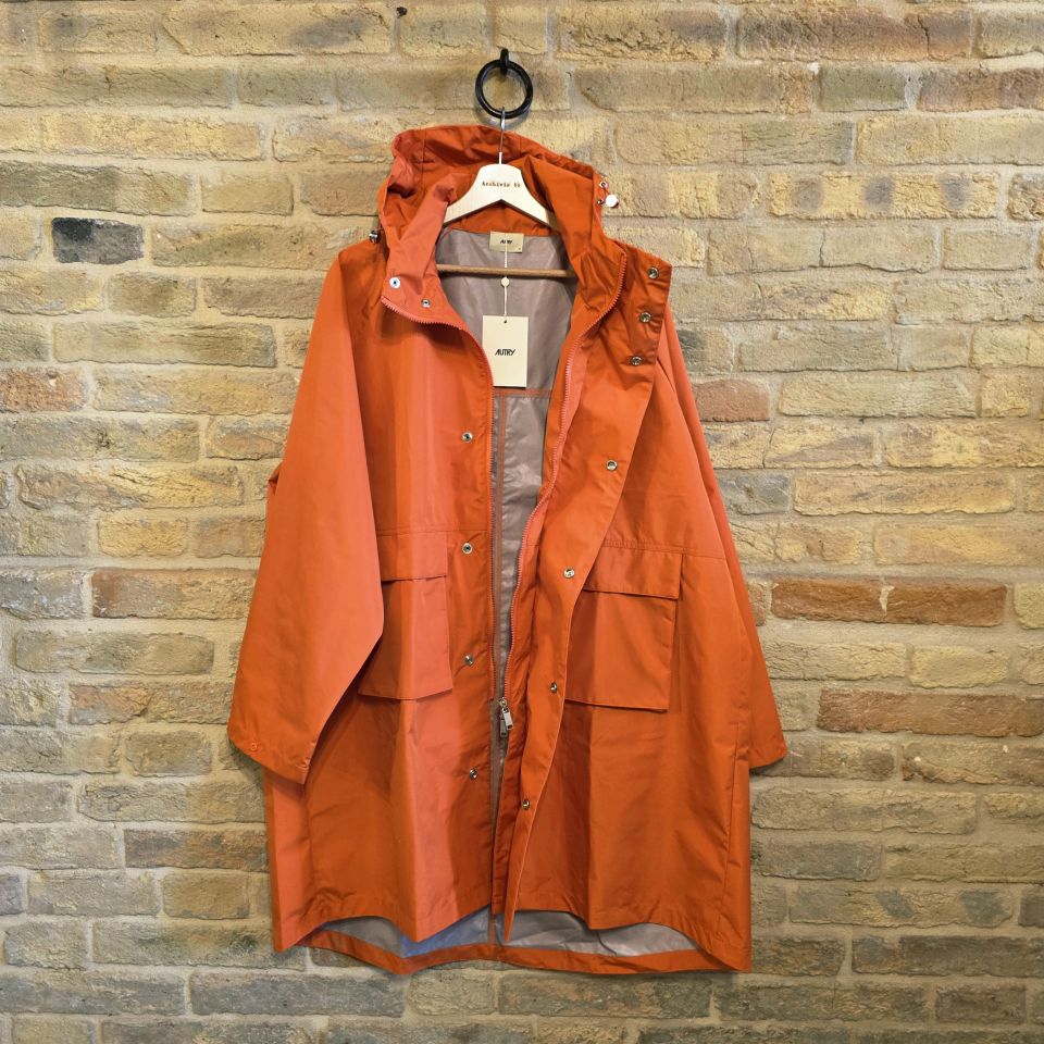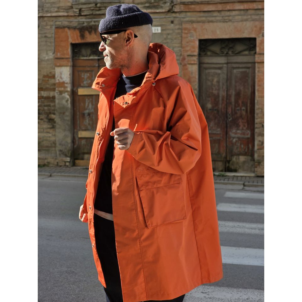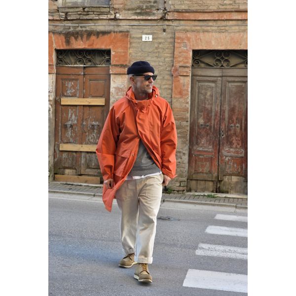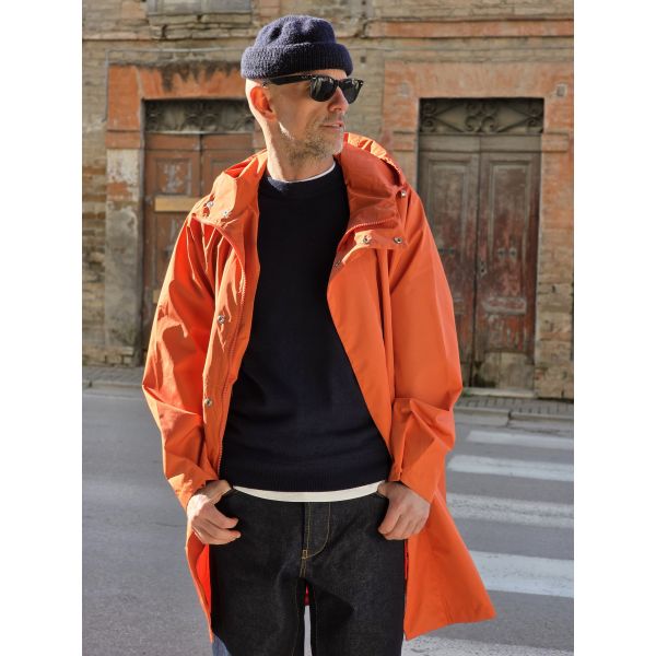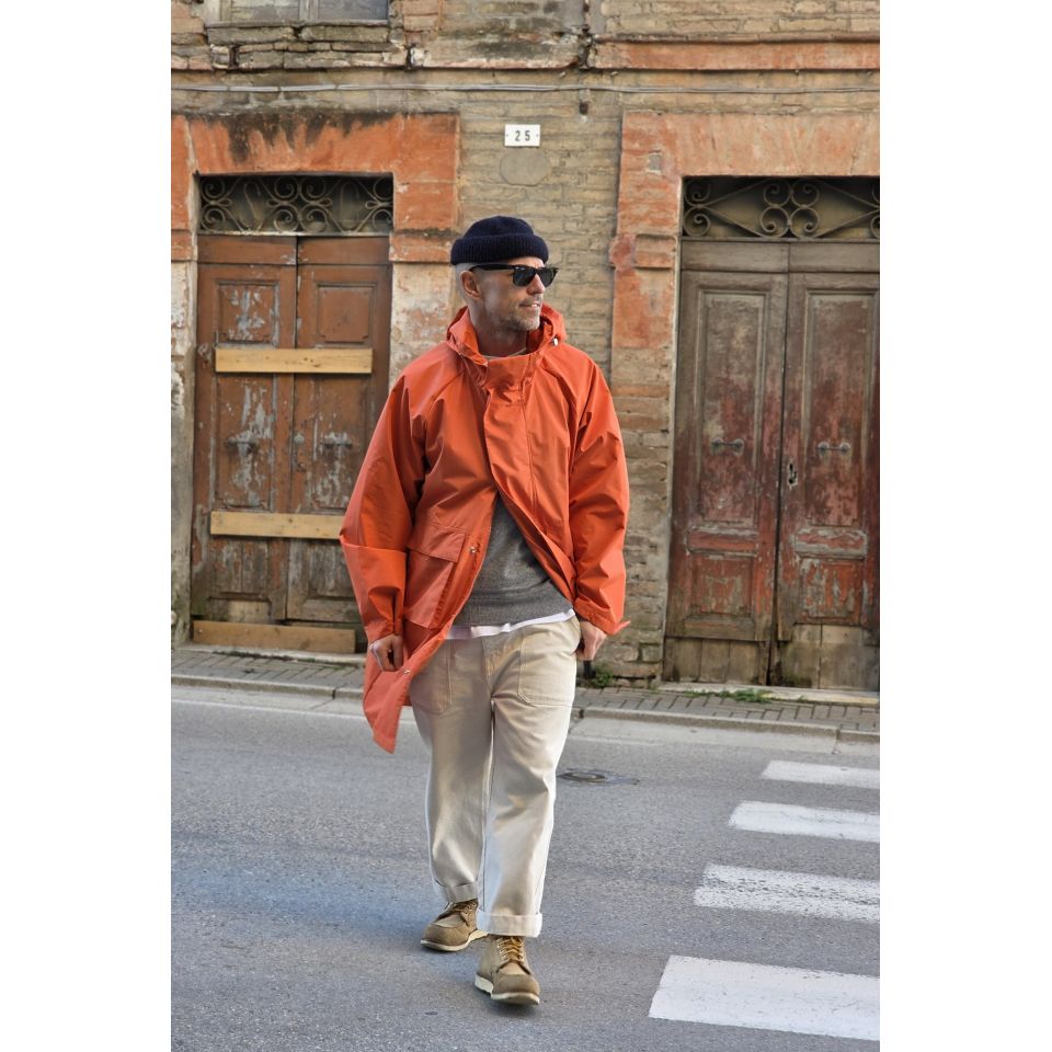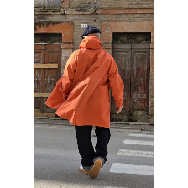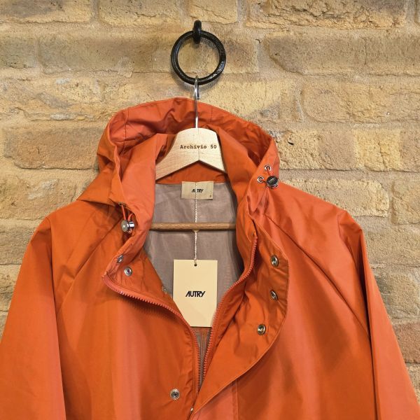 Chiusura frontale con zip intera nascosta e bottoni a pressione.