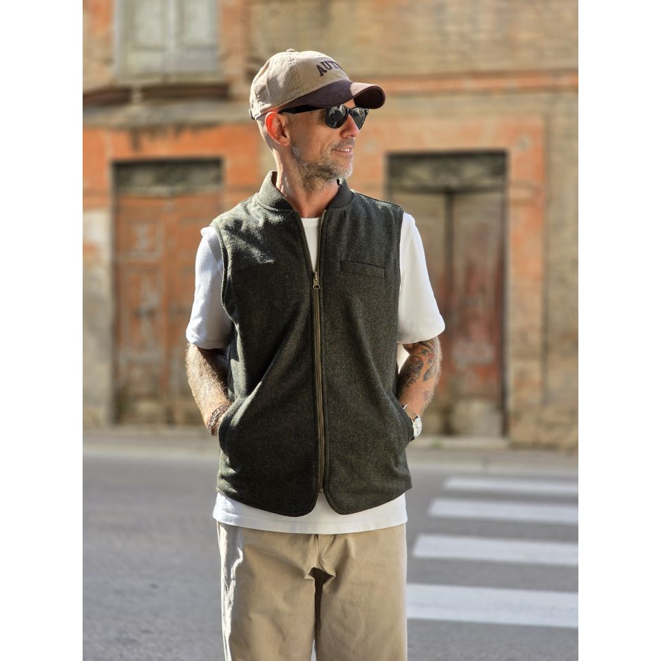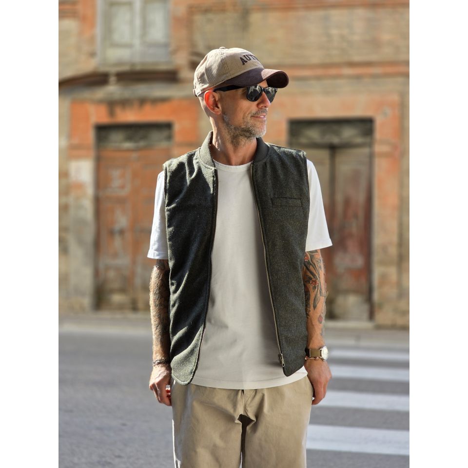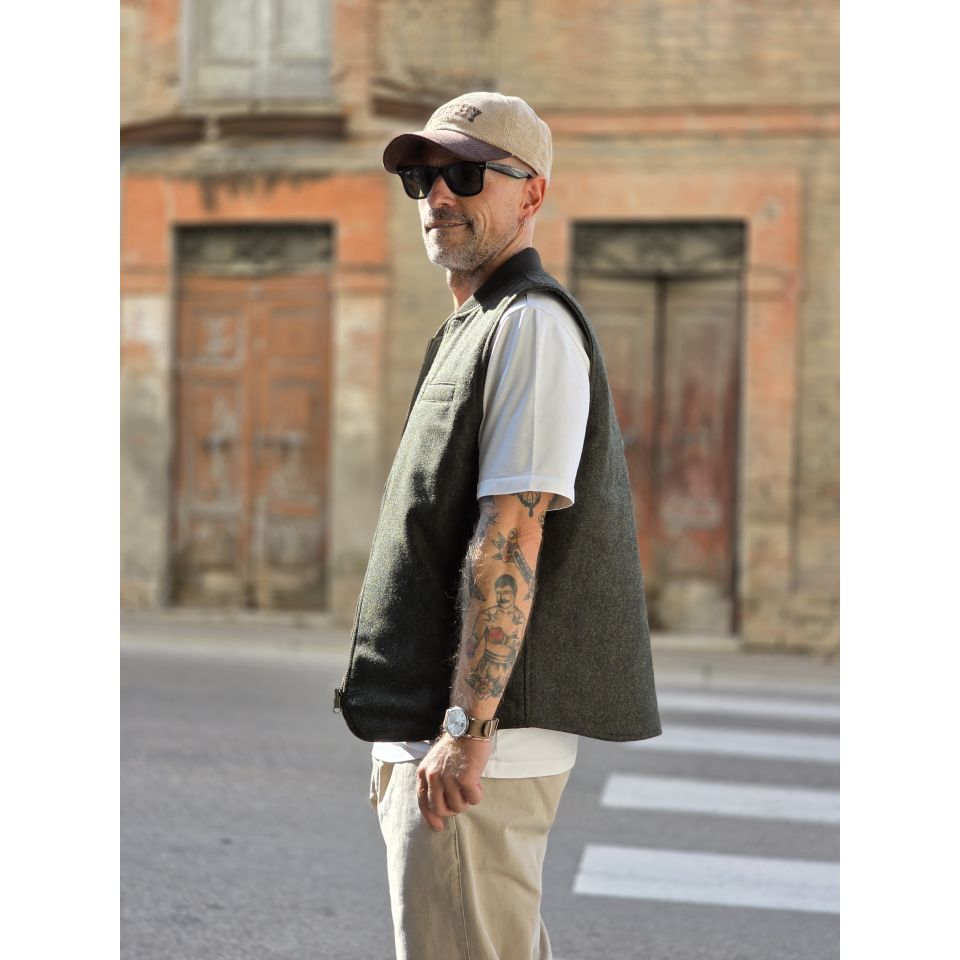 Vest Bl' ker Reversibile trapuntato ed in Donegal ( Tweed ).