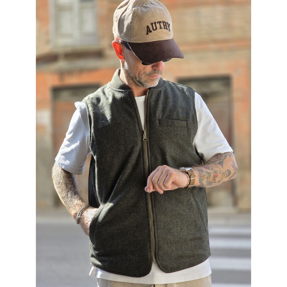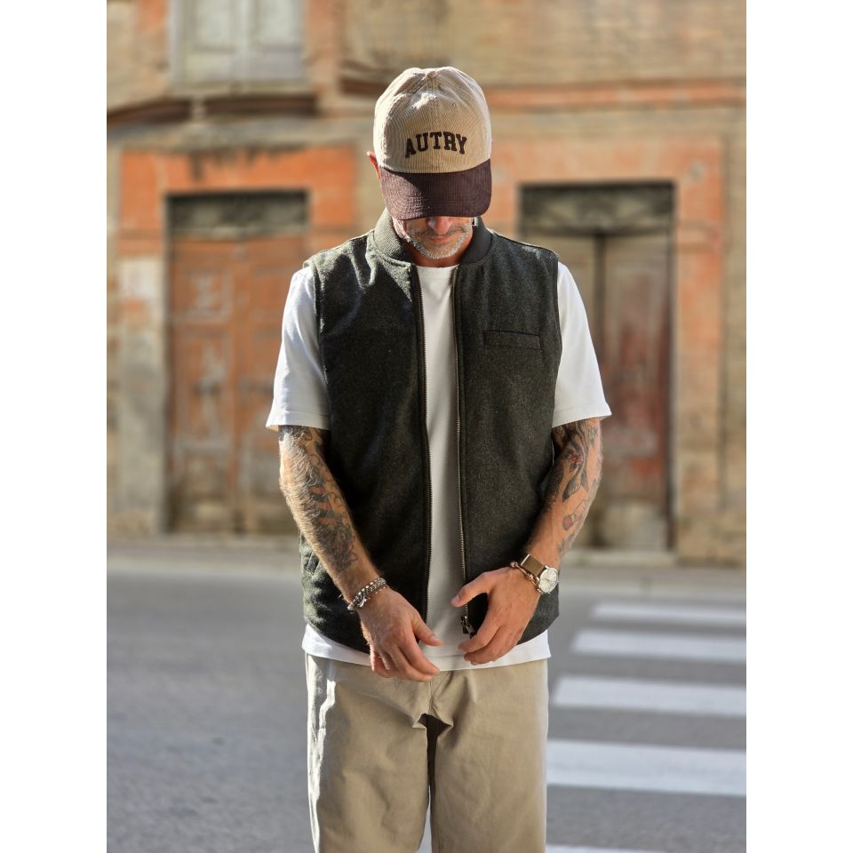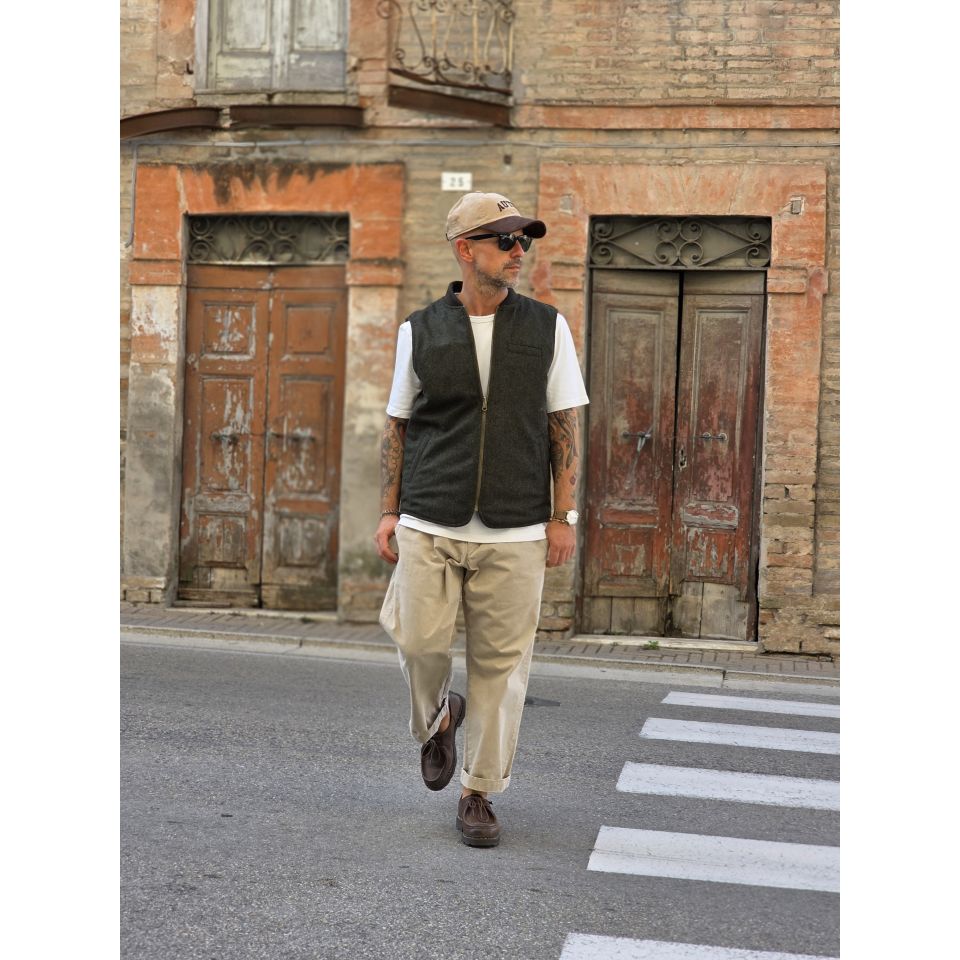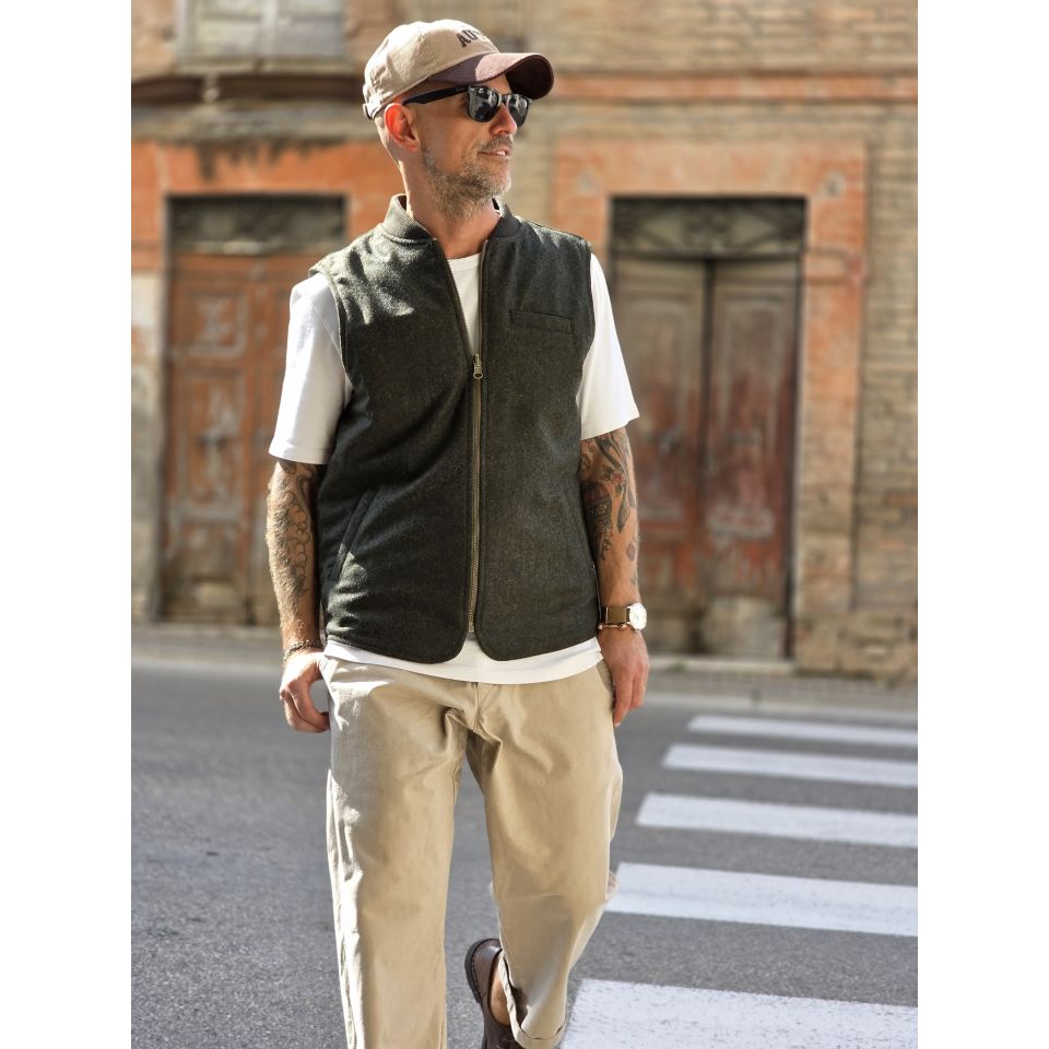 Vest Bl' ker Reversibile trapuntato ed in Donegal ( Tweed ).