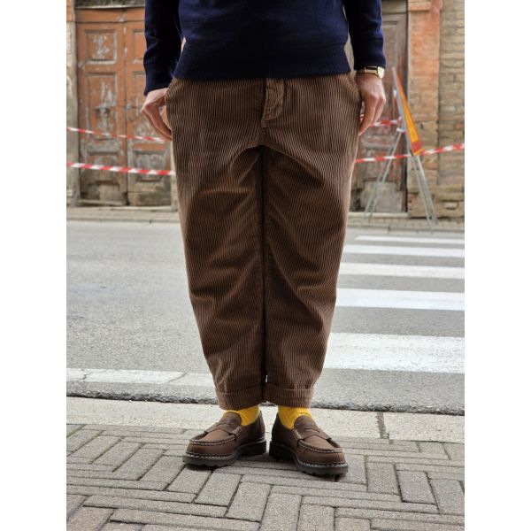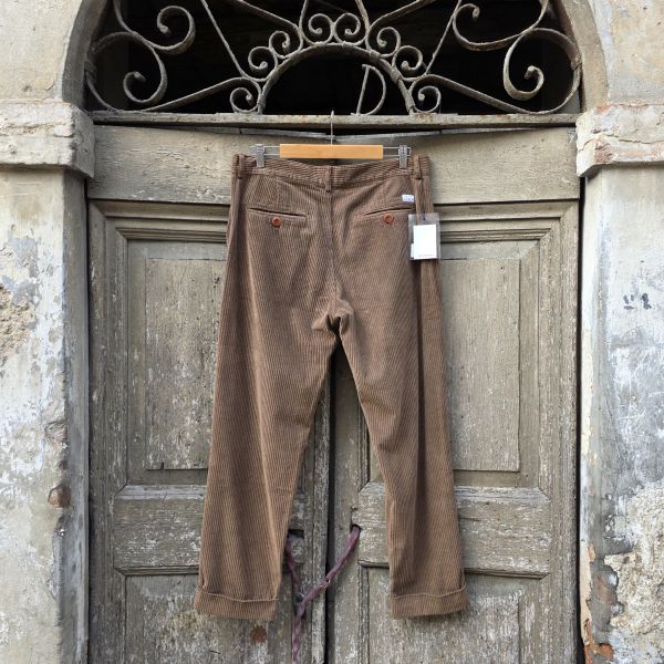 Pantaloni in velluto con chiusura frontale a bottoni.