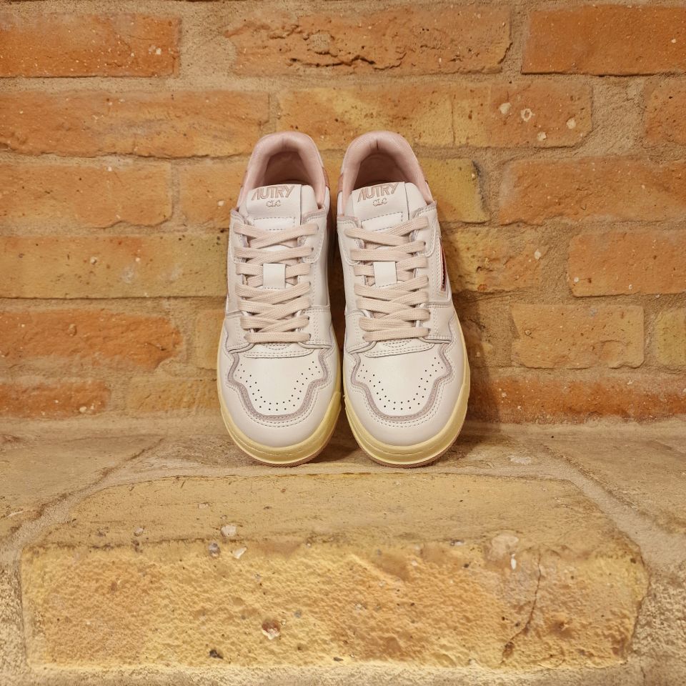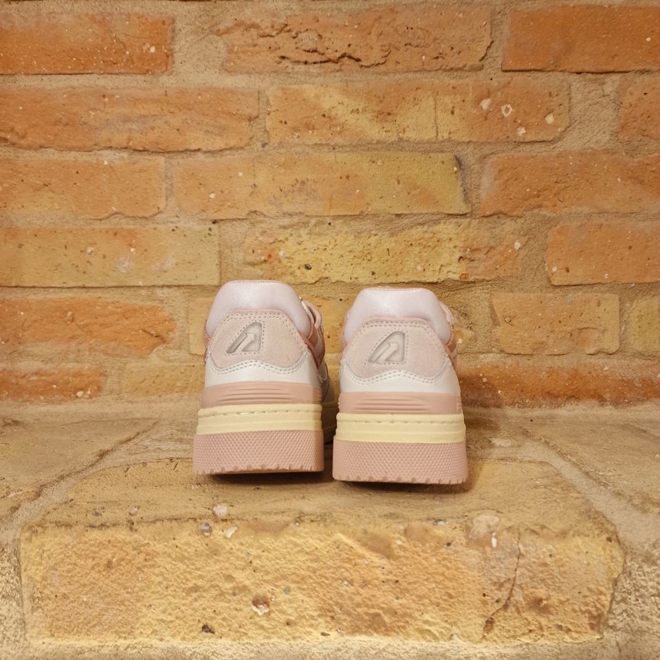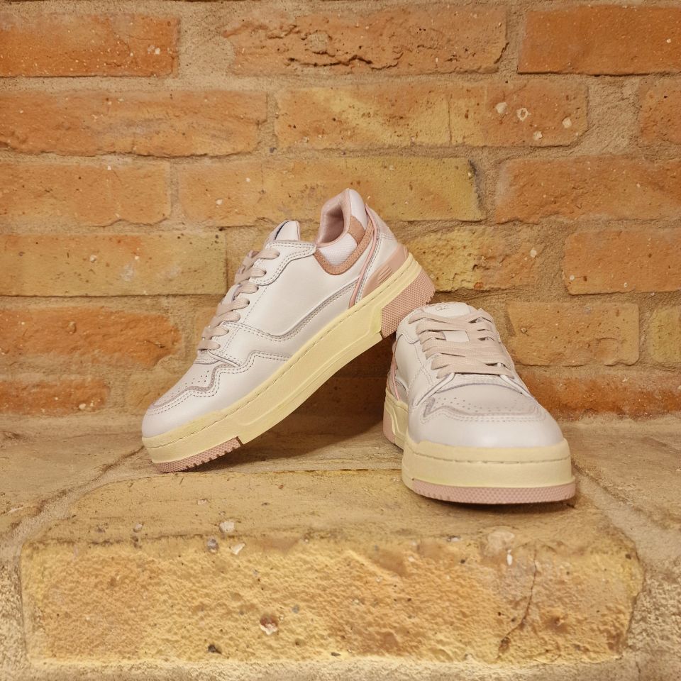 Sneakers in pelle di vitello bianca e con dettagli rosa.