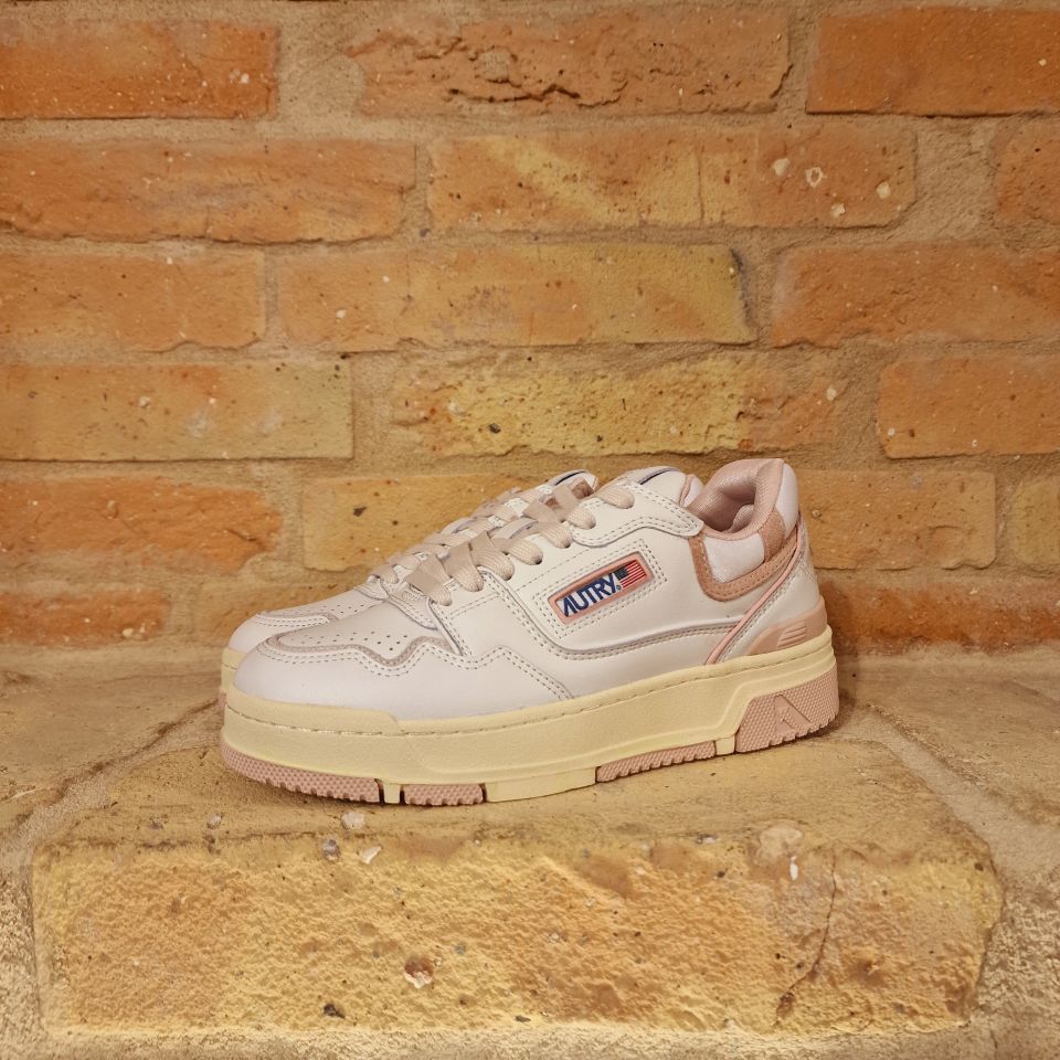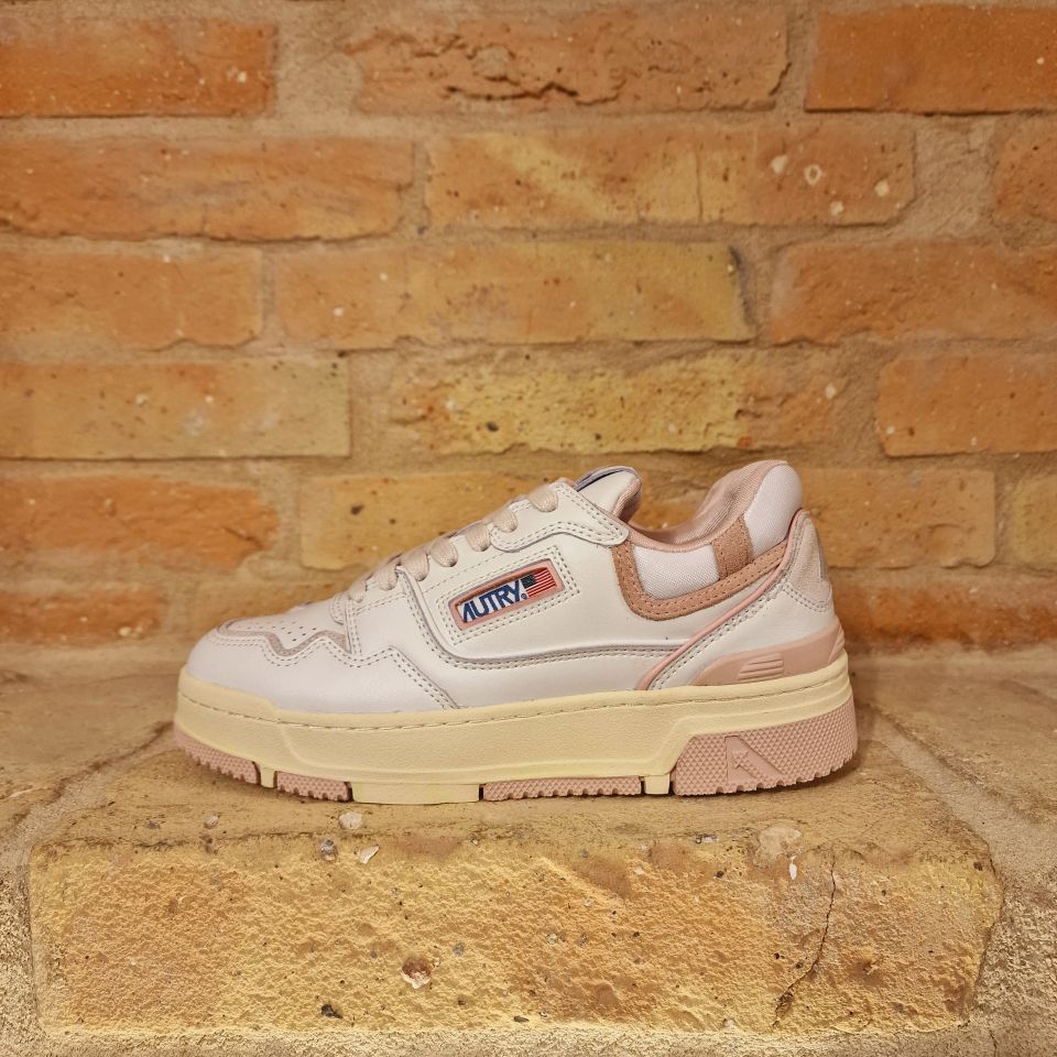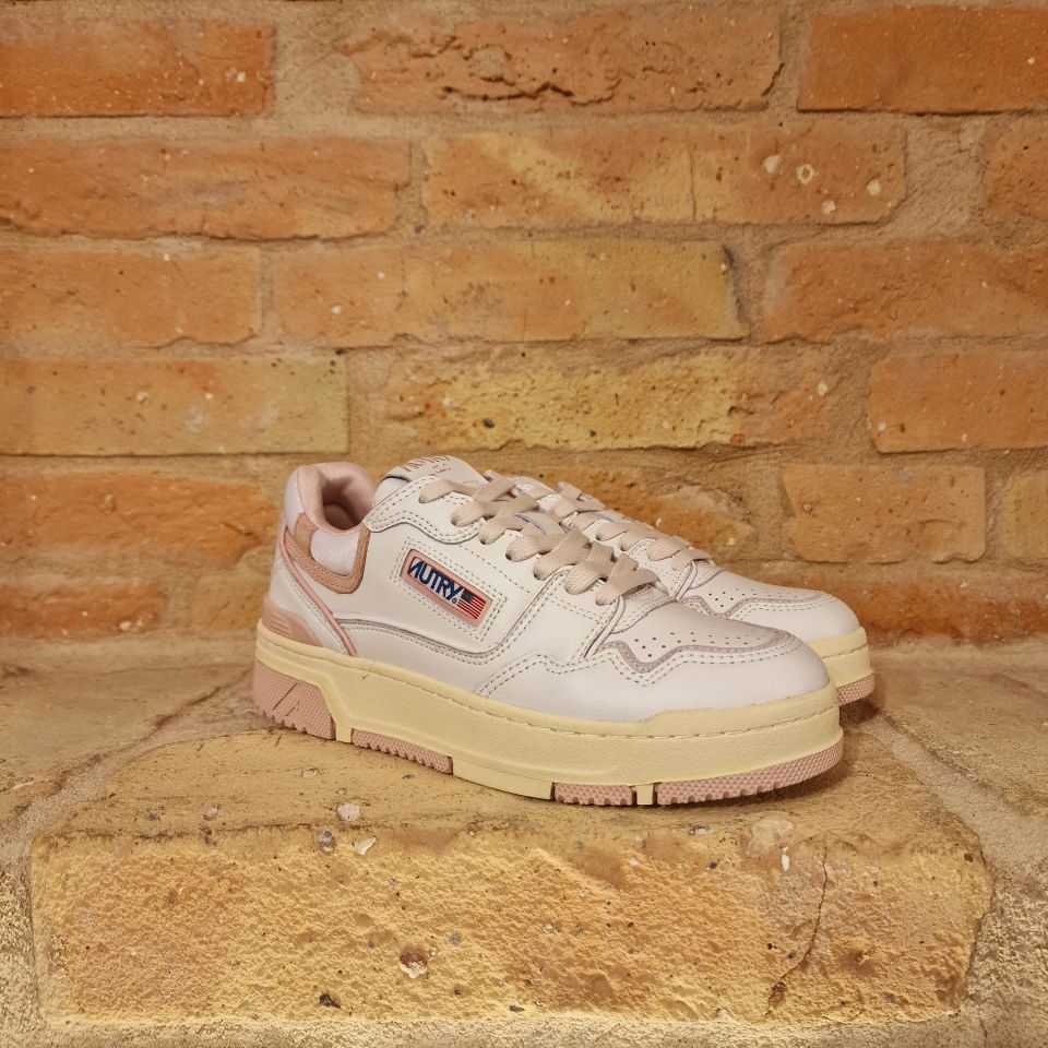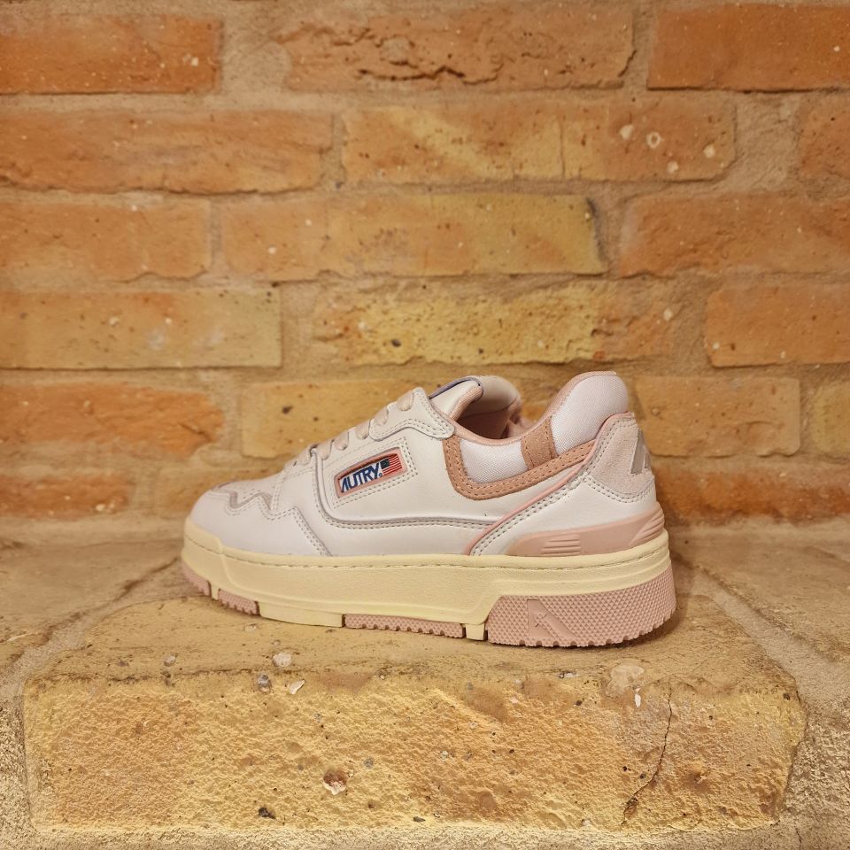 Sneakers in pelle di vitello bianca e con dettagli rosa.