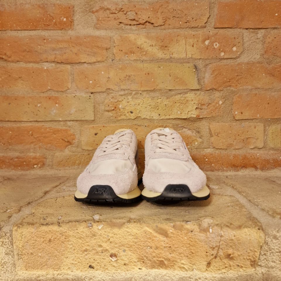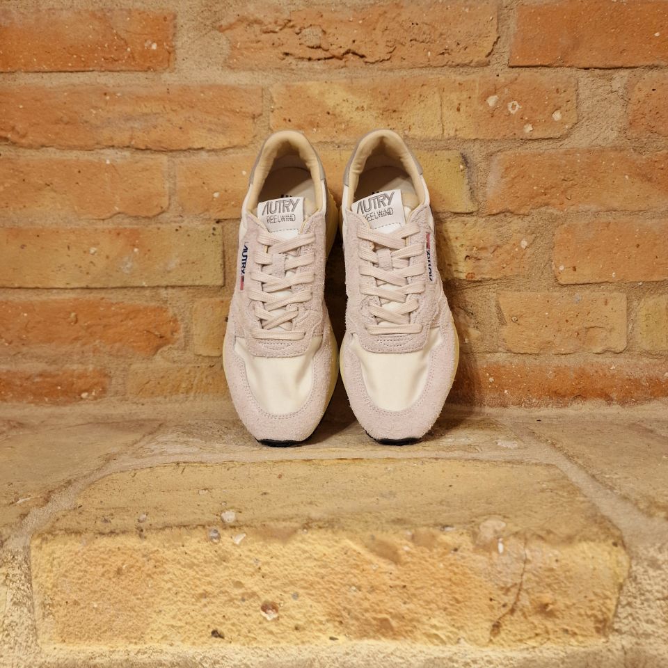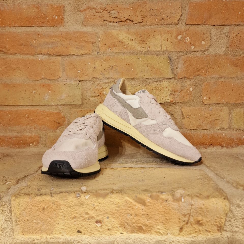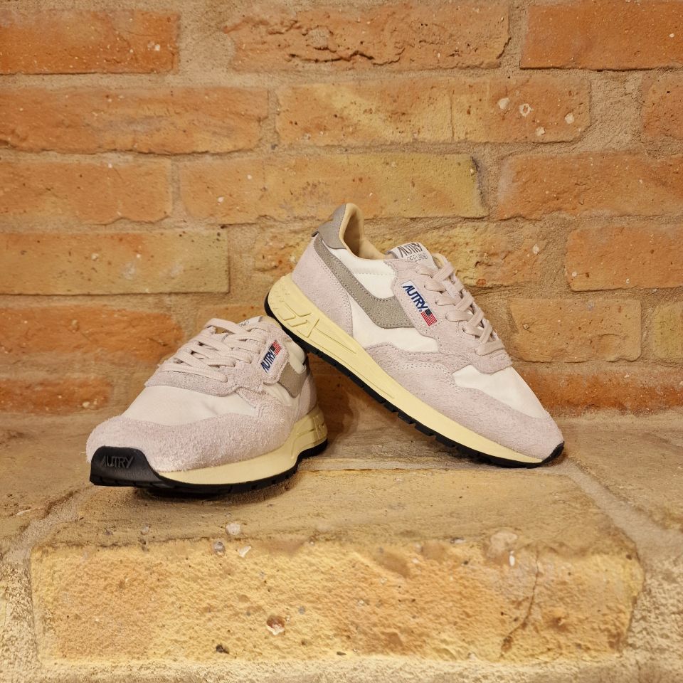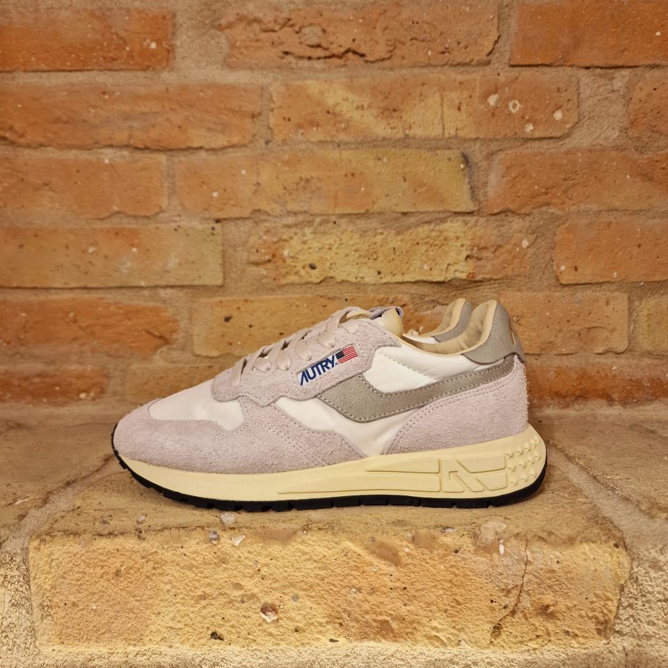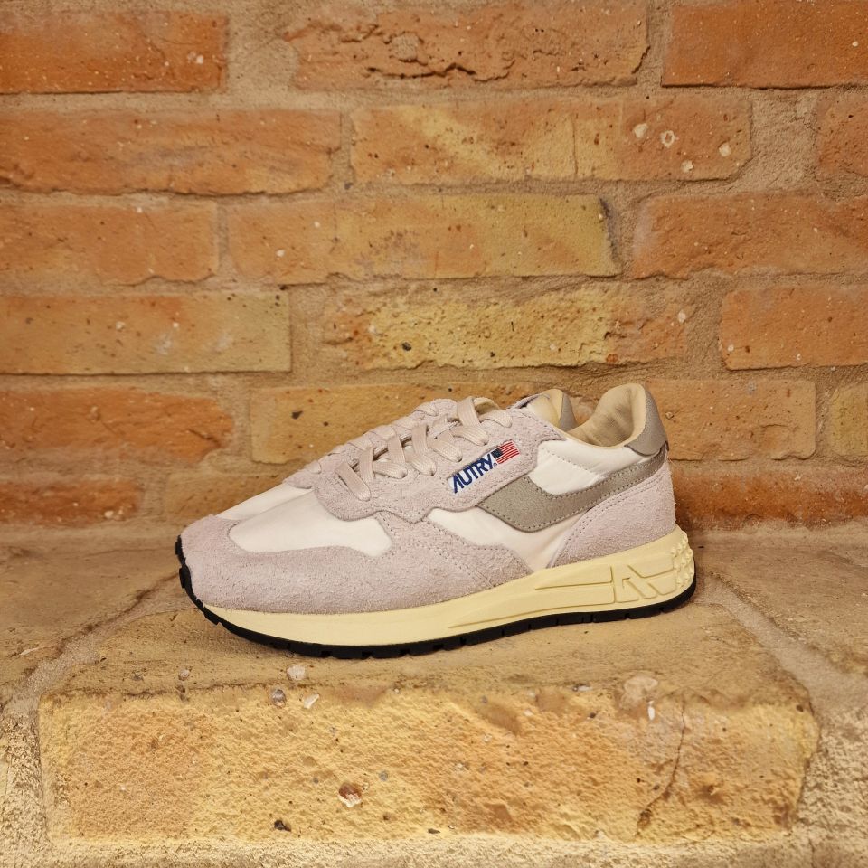 Un mix di nylon e suede white con logo sui lati in pelle grigia.